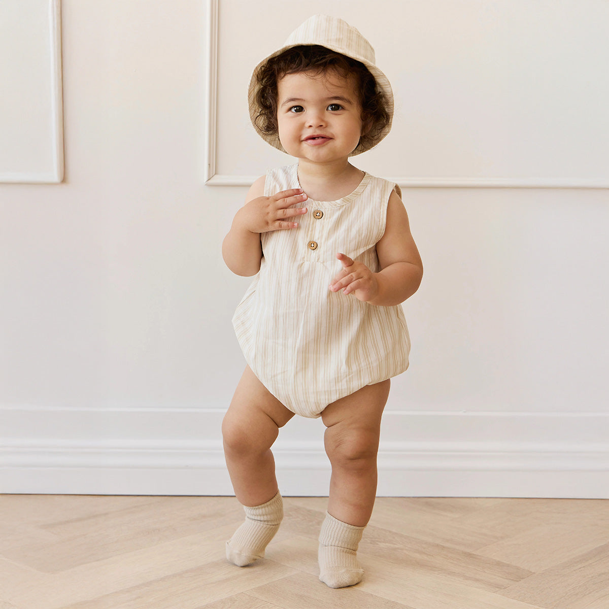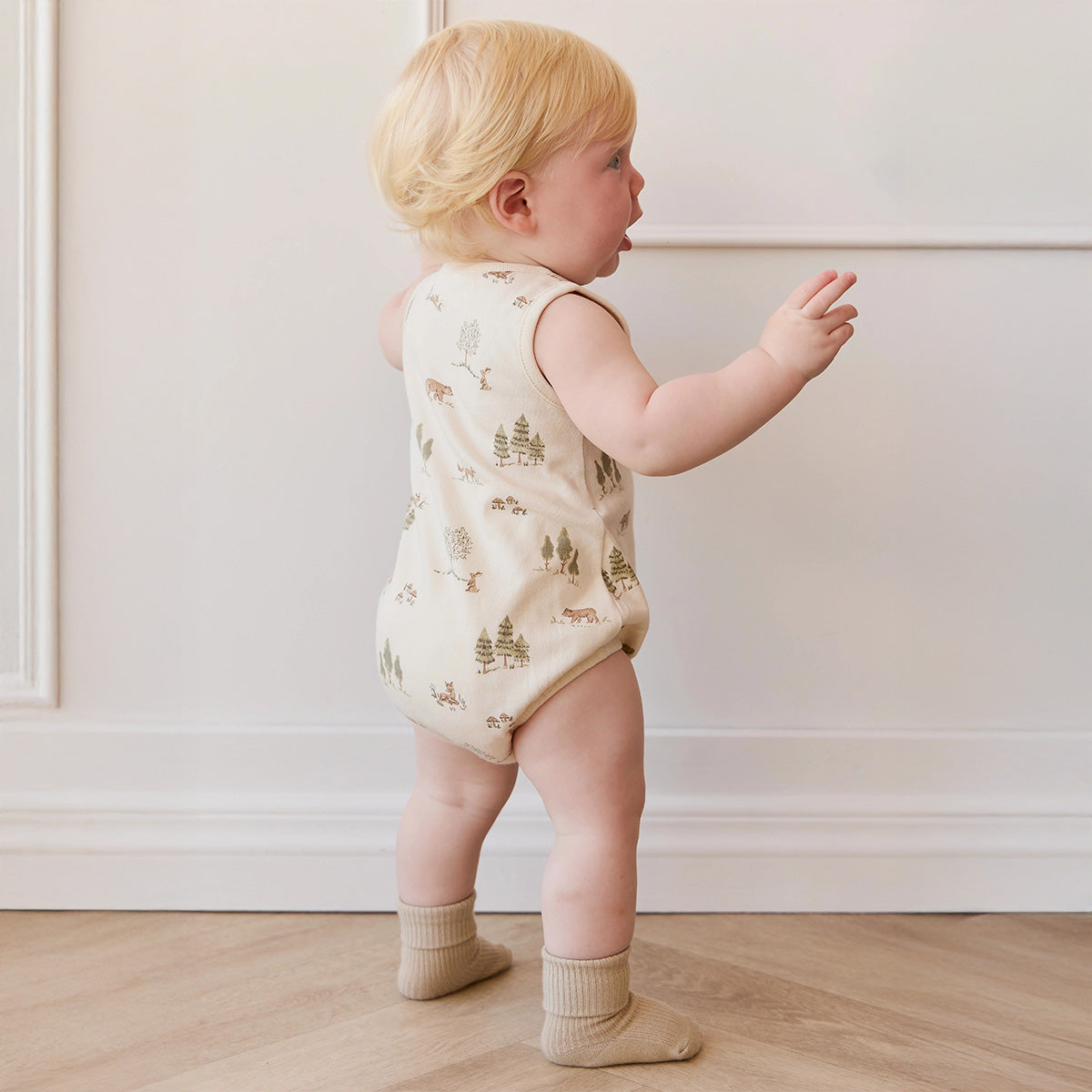 A classic and comfortable staple for everyday wear, the Archie Playsuit in Forest Gathering is crafted from 100% organic cotton, offering a soft and breathable feel for delicate skin. This charming playsuit features an off-white base with a forest friends pattern, finished with two coconut buttons at the chest and elasticated leg openings for a snug, comfy fit.