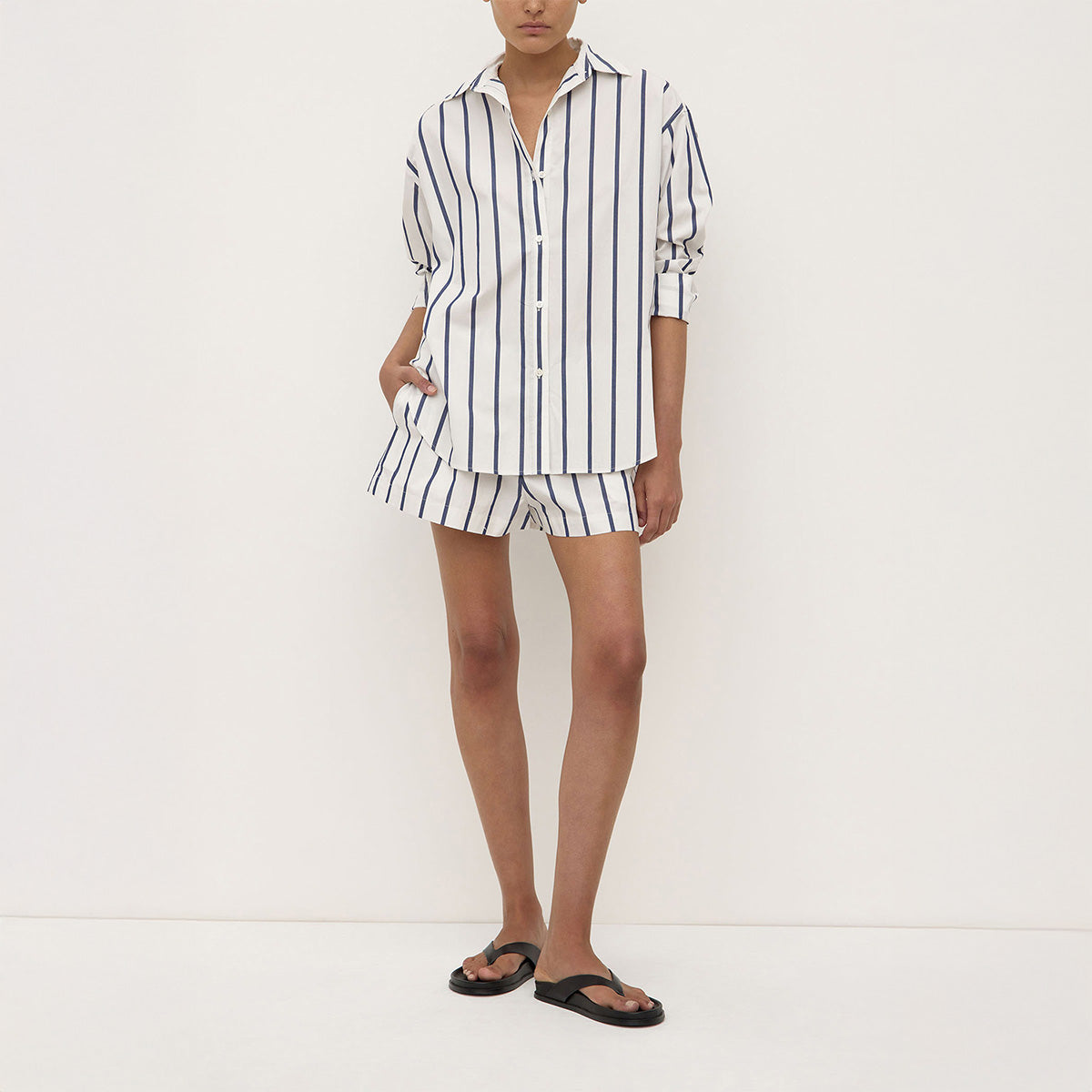 Nara Stripe Long Sleeve Shirt - White/True Navy
