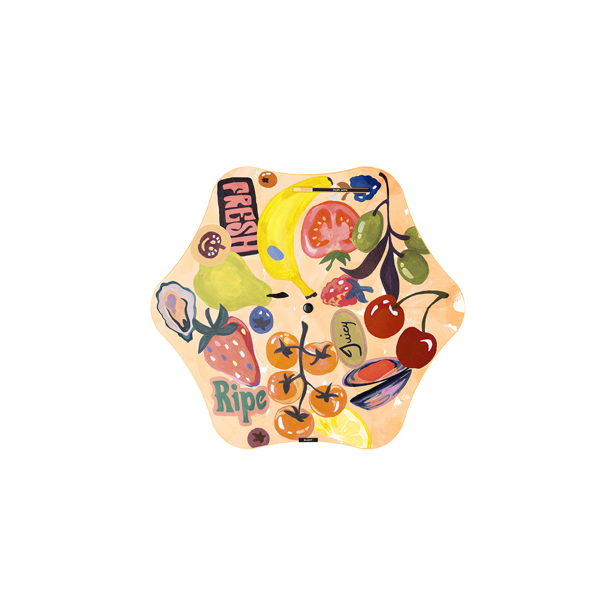 Inspired by Bonnie Brown's Sunday ritual of wandering local farmers markets, this design celebrates the spontaneous beauty of fresh produce in a crisp, vibrant palette.