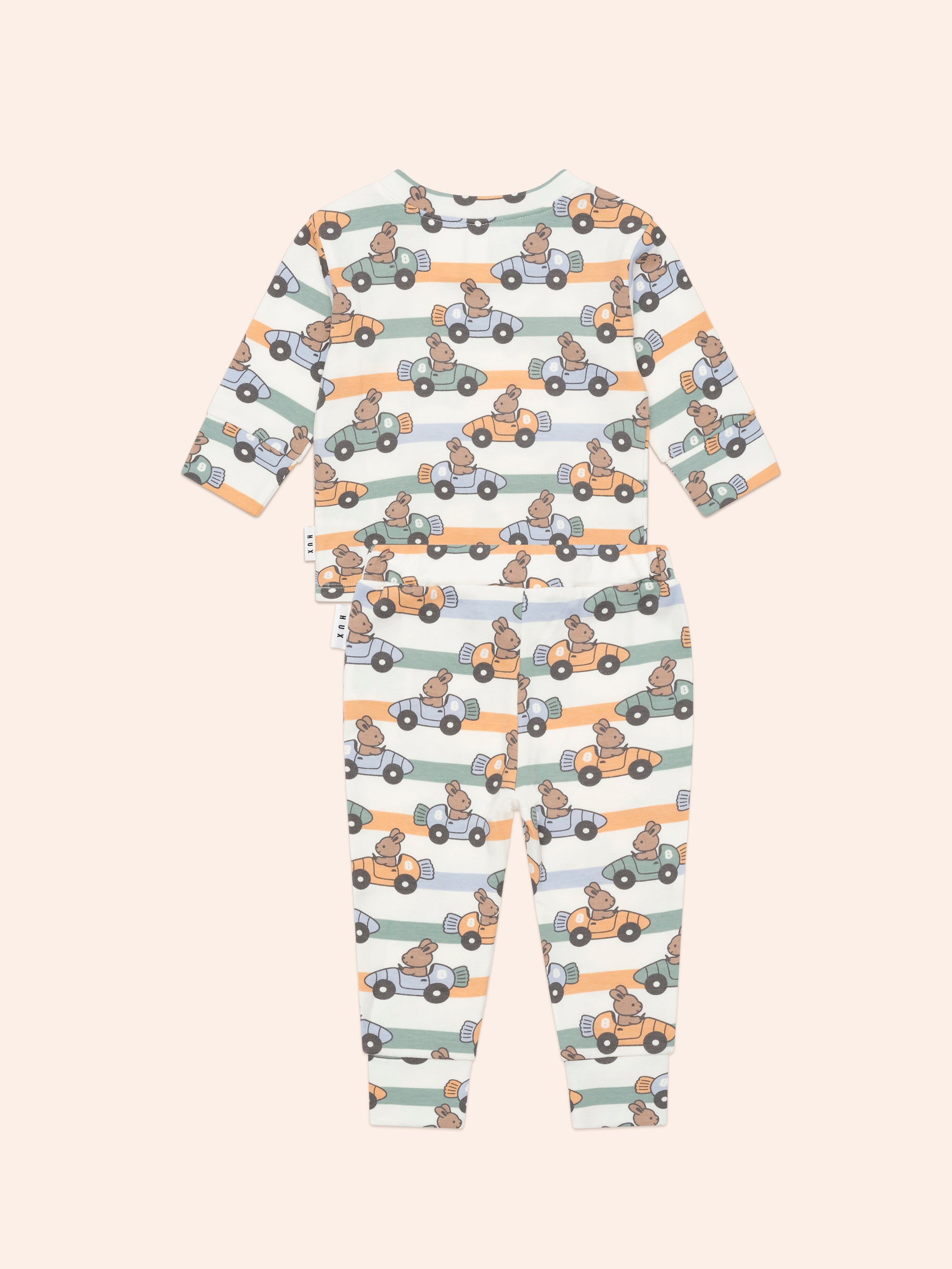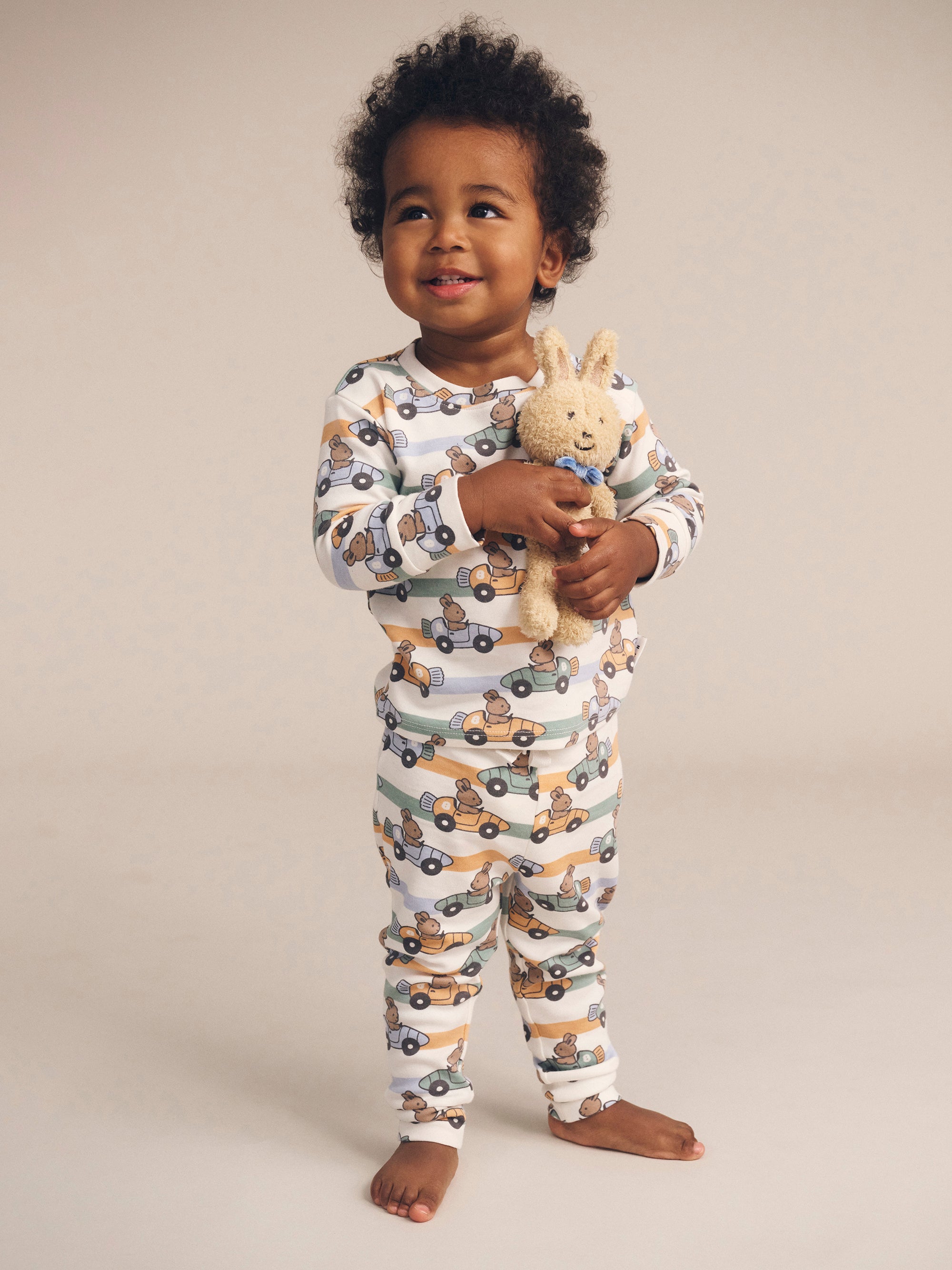 More Zzz’s, less sugar highs. This beautifully boxed gift set features our dreamy Carrot Car organic cotton pyjamas in milky white and an extra special furry bunny friend, made for hugging.