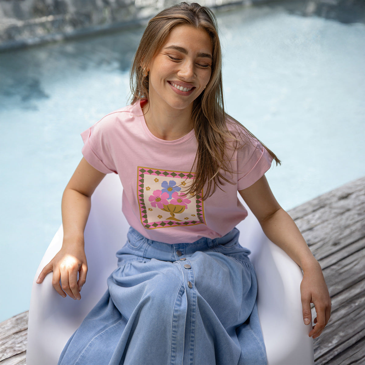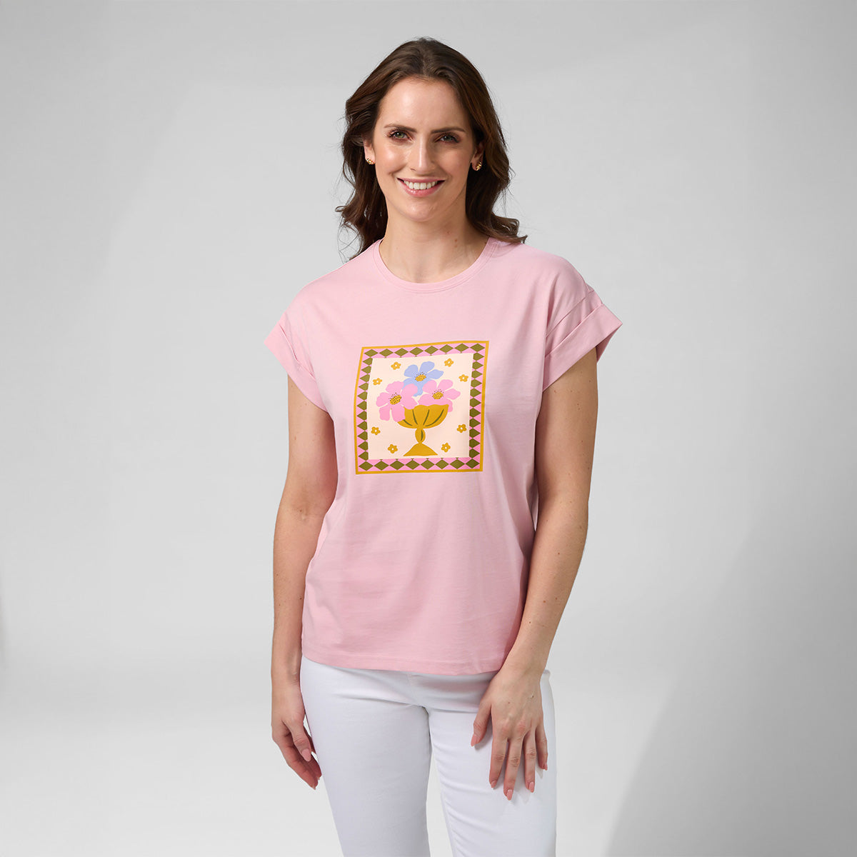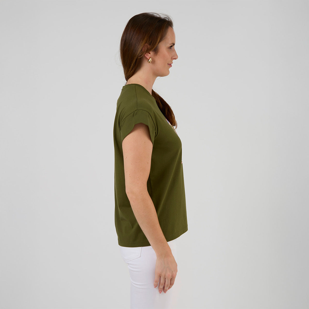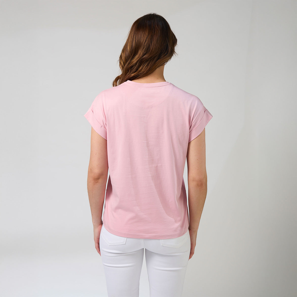 Relaxed fit crew neck t-shirt with capped sleeves.