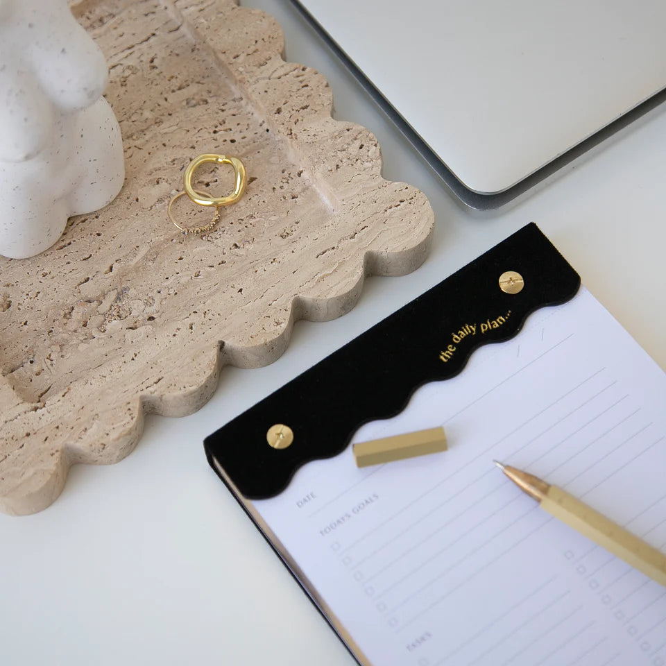 Our exclusively designed daily notes pad is a showstopper for your desk. With a gold embossed linen header and gold edged pages it oozes sophistication. With 100 perforated sheets it makes it super easy to tear off and start fresh each week. Designed with the modern minimalist in mind.