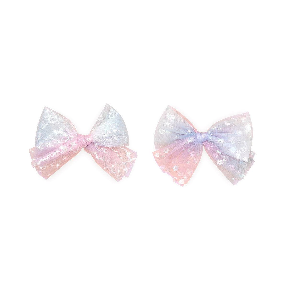 Sea rainbow tulle with all over iridescent daisy seashell foil print and iridescent mermaid foil print bow