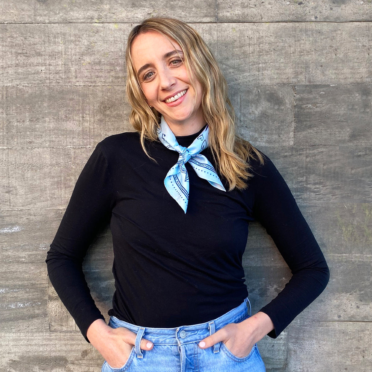 A special collaboration with country music star Kaylee Bell, this limited edition silk petite scarf is a bold yet feminine take on Dark Hampton's signature style.