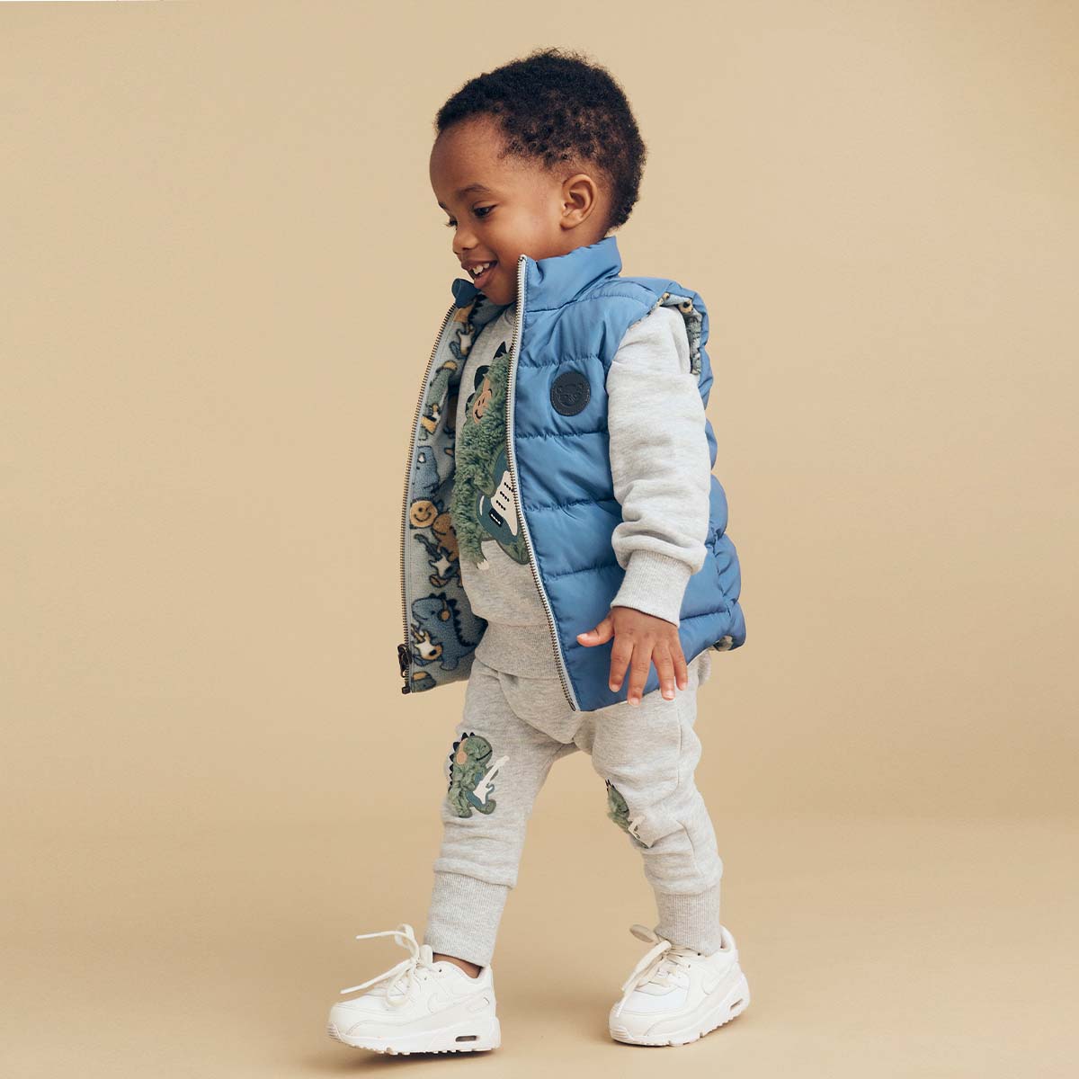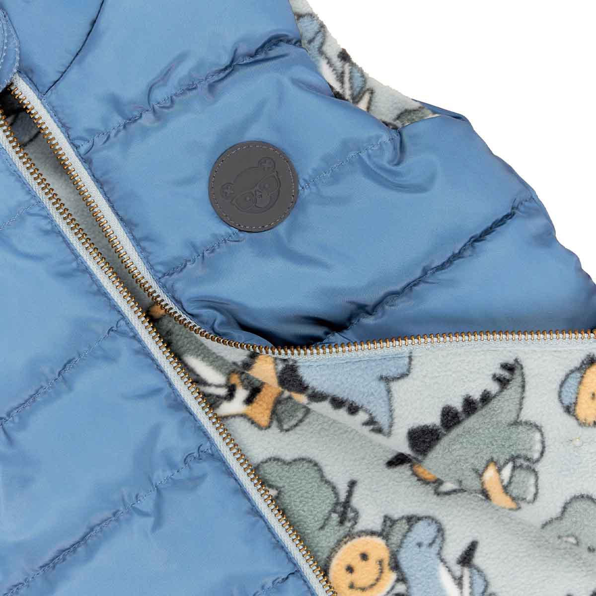 • Reversible vest with all over dino band print and huxbear patch