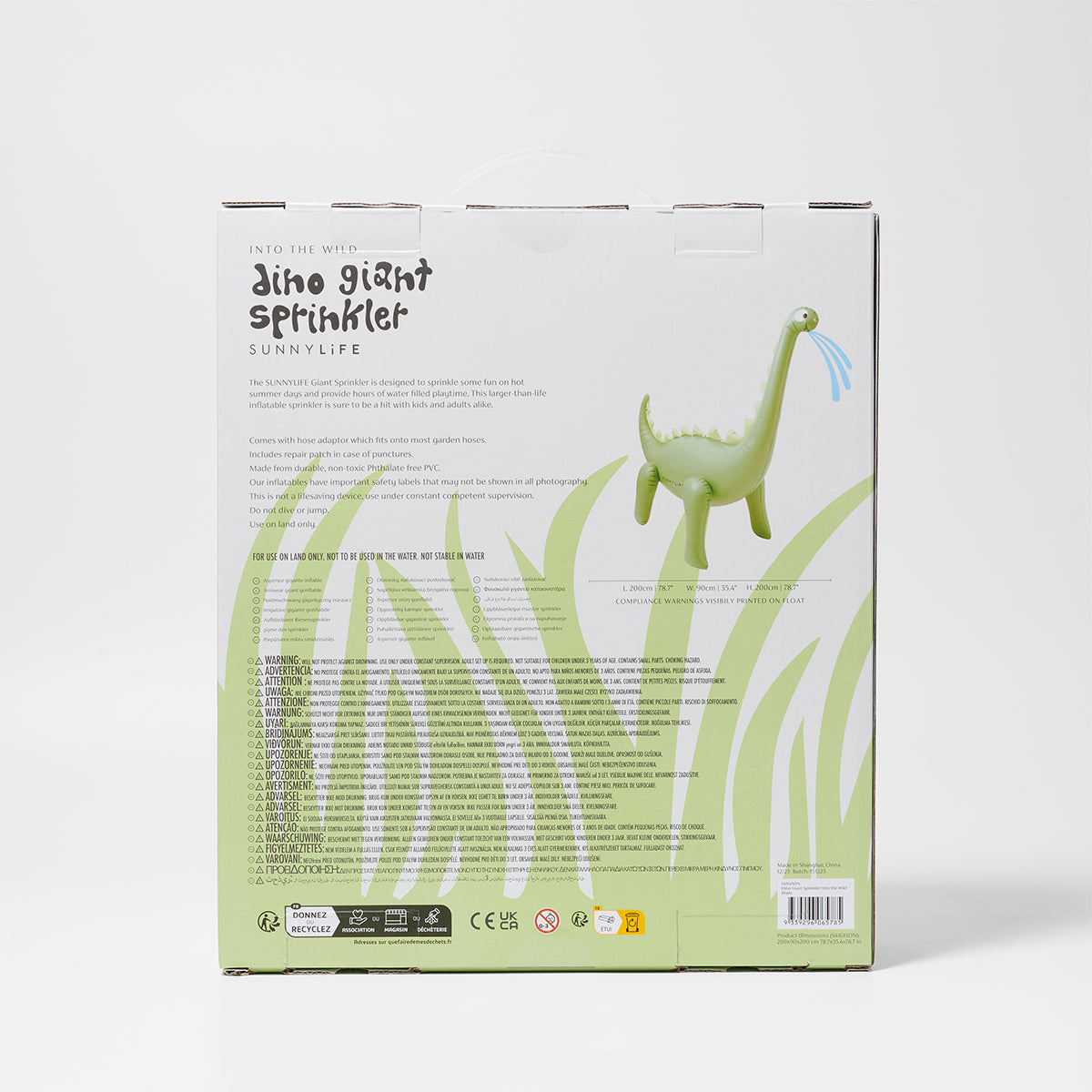 The Into The Wild Dino Giant Sprinkler is designed to refresh hot summer days and provide hours of water filled playtime. Standing tall and proud at over 6 feet, this larger-than-life inflatable sprinkler is sure to be a hit with kids and adults alike. Simply attach to your garden hose and play beneath the sun shower of water spraying from its mouth.