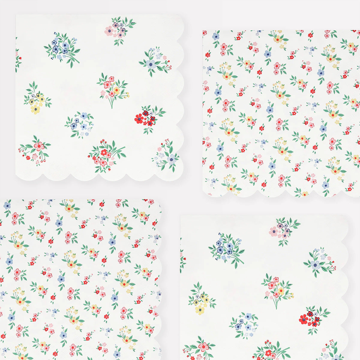 Dainty posy bouquets and ditsy floral clusters add effortless elegance to any setting. These classic designs are influenced by fashion-forward floral pattern trends, which include a touch of red to keep the look modern and fresh. These small paper napkins are ideal for table layering at garden parties, baby showers, bridal showers or wherever you want a sophisticated effect.