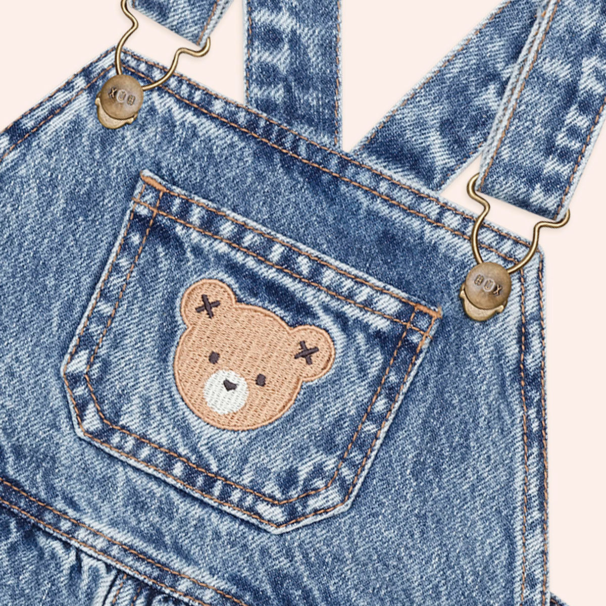 A classic pair of 90s overalls in quintessential blue. Made from the softest denim you’ll ever feel, they feature adjustable straps for comfy wear, chest, side and back pockets perfect for stashing treasures in and a classic Huxbear embroidery. Baby sizes include stainless steel crotch snaps for easy dressing. Style them alone or over a tee.