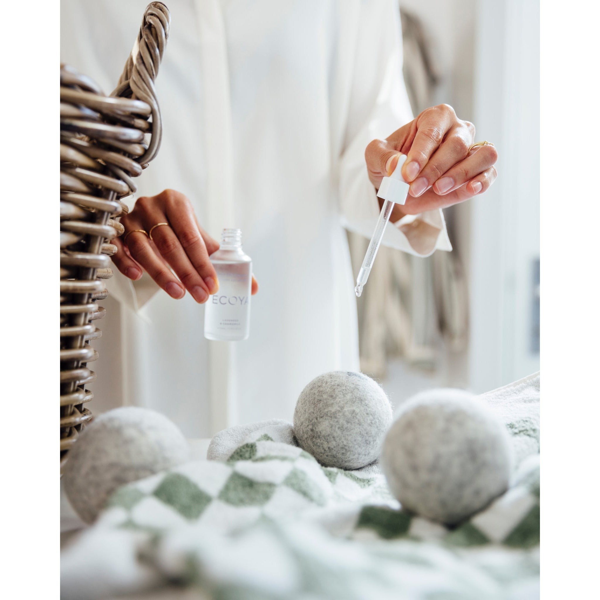 Made from 100% New Zealand wool, these Fragranced Dryer Balls will subtly fragrance your linens, whilst bouncing about your dryer, preventing bunching, creating airflow and absorbing the moisture of your laundry, hence reducing drying time.