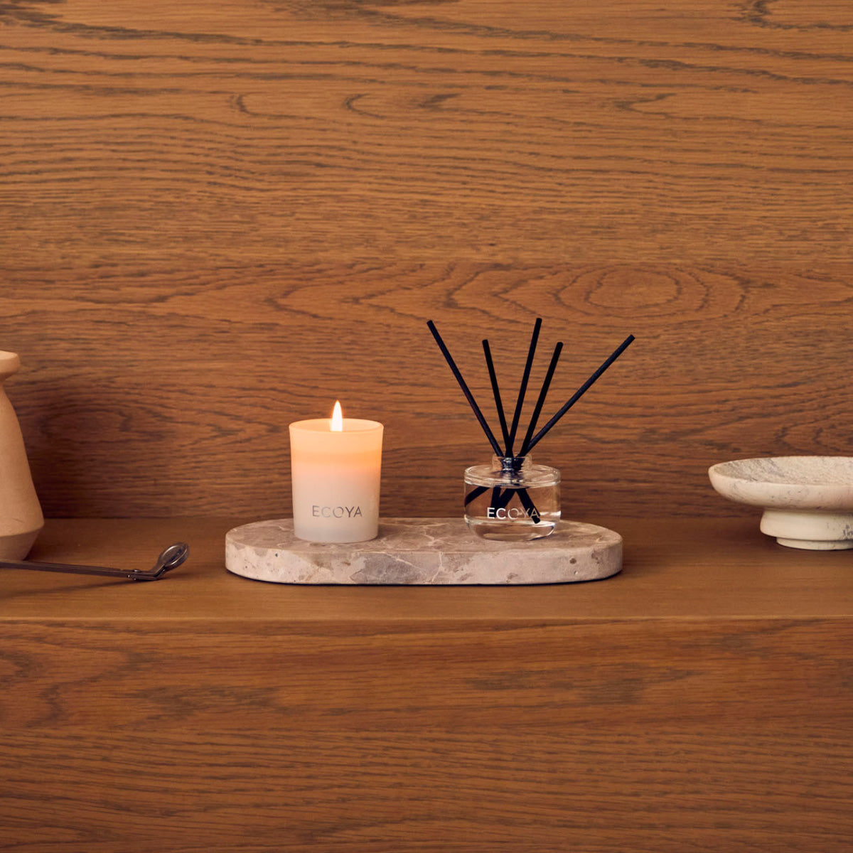 Compact yet impactful, the ECOYA Mini Reed Diffuser is the perfect solution for smaller spaces. Housed in a sleek glass vessel with a soft, rounded base and black synthetic reeds, it provides long-lasting and beautiful fragrance for up to two months.Presented in a stylish box, it’s an ideal gift or a chic addition to your home.