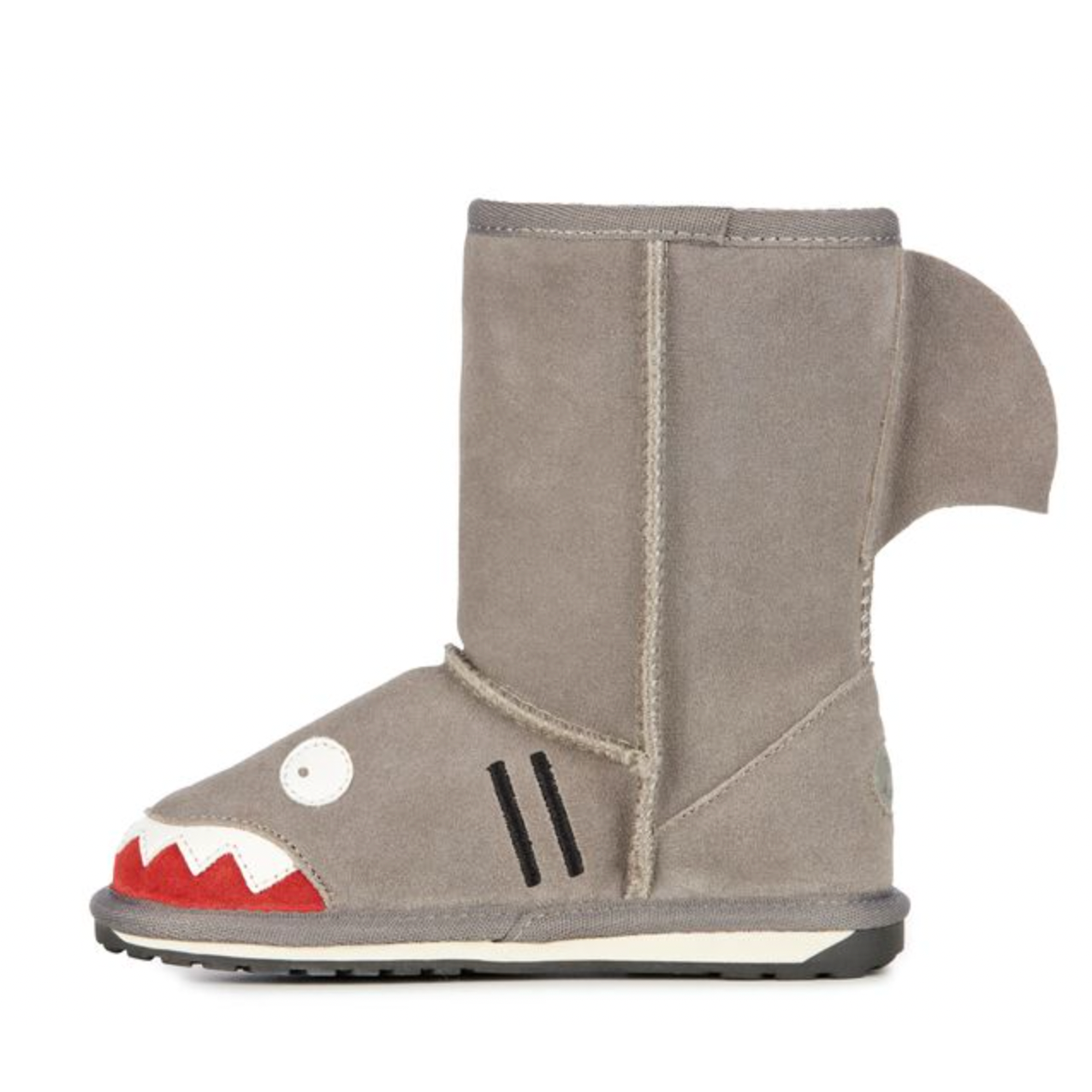 The EMU Australia Shark is a children’s mid calf boot featuring teeth and a playful fin. Soft Australian Merino wool lining keeps feet warm and cosy, while the cushioning and durable outsole provides all day comfort.