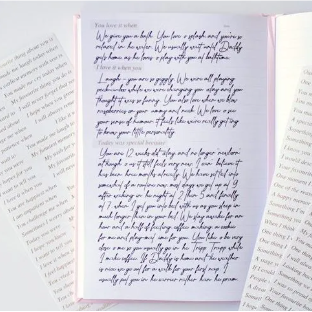 By spending a few minutes to record the most precious moments, you can create an heirloom books of baby and childhood memories to your daughter, son, granddaughter or grandson to cherish for a lifetime.
