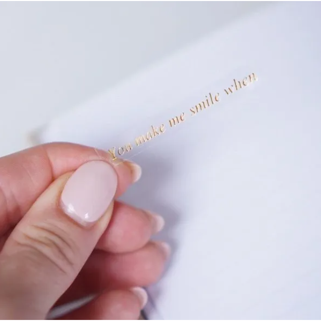 Included are 140 prompts across three pages of glossy gold foil stickers and a 200 page journal with delicate dotted lines, space for a date and internal pocket for mementos.