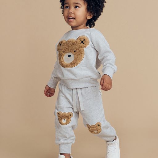 - Sporty, premium organic cotton terry track pant with fur huxbear applique on knees