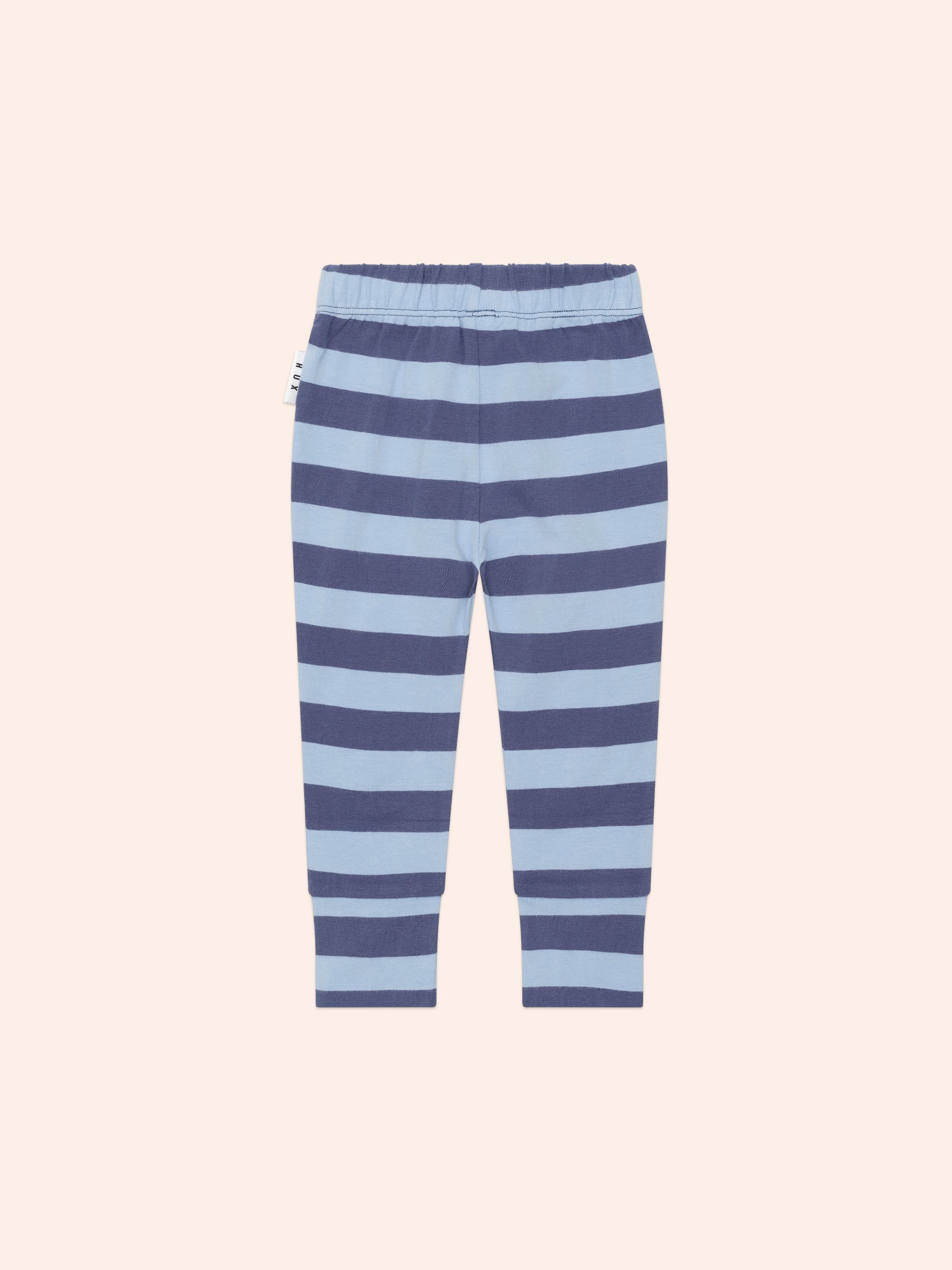 A cloud-like pair of organic cotton leggings in vintage blue stripes. Made with a soft, stretchy waistband and a cute-yet-comfy Huxbear embroidery knee detail, they’re perfect for playgrounds, playdates or pottering around the house.