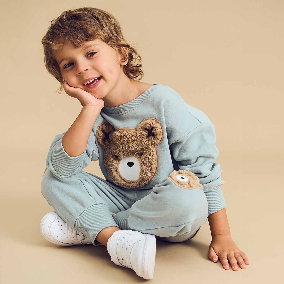 Sporty, premium organic cotton terry retro track pant with fur Hux applique on knees