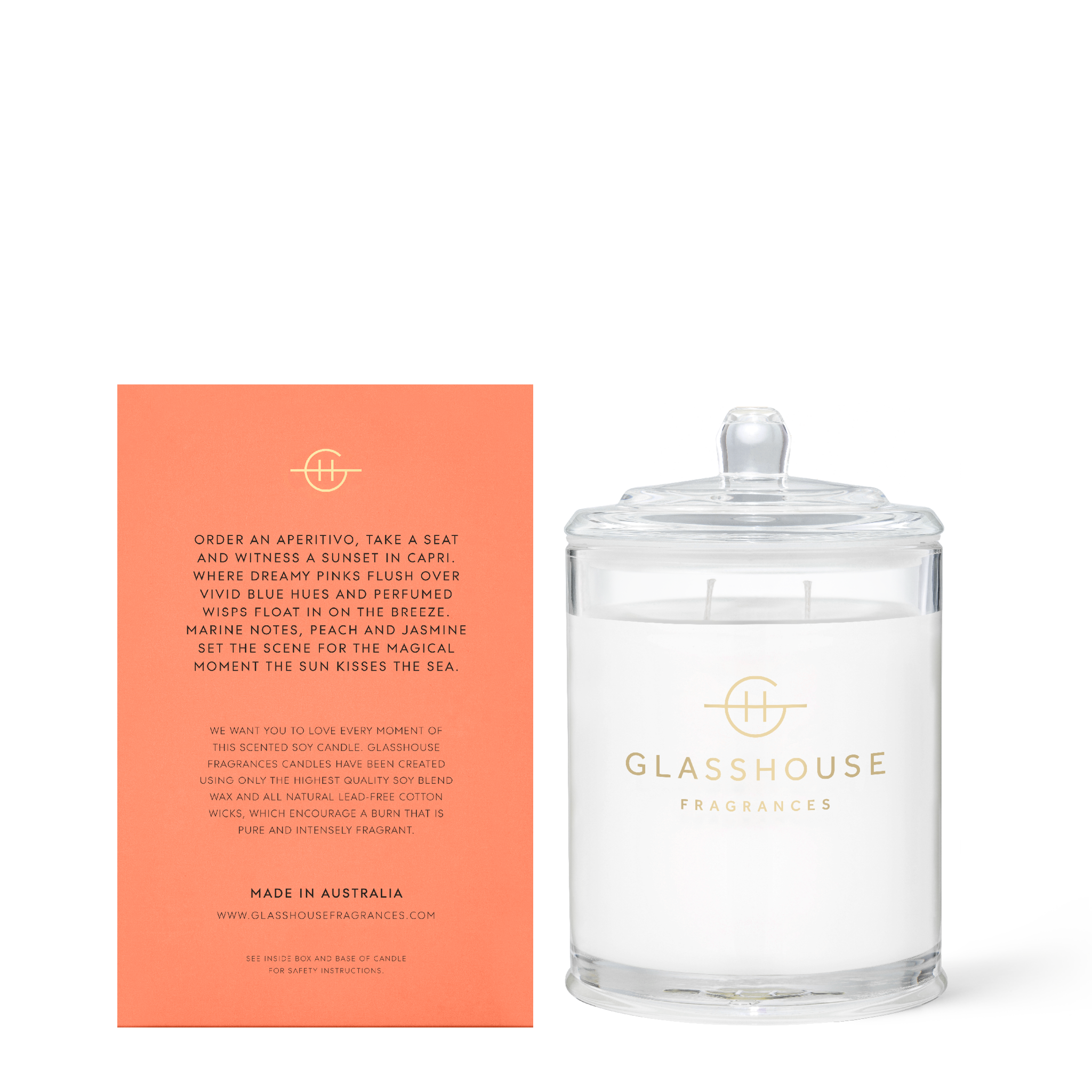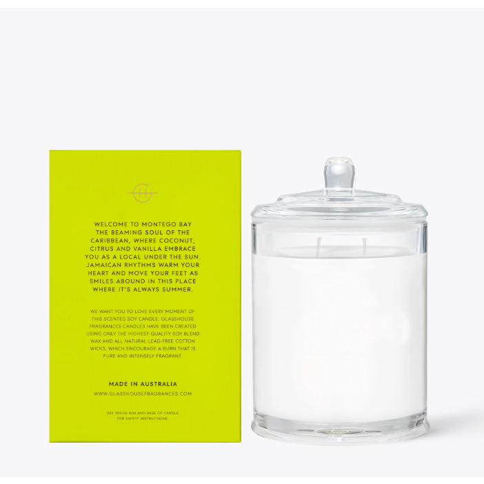 Glasshouse Fragrances are created using only the highest quality soy blend wax and all natural lead-free cotton wicks, which encourage a burn that is pure and intensely fragrant.