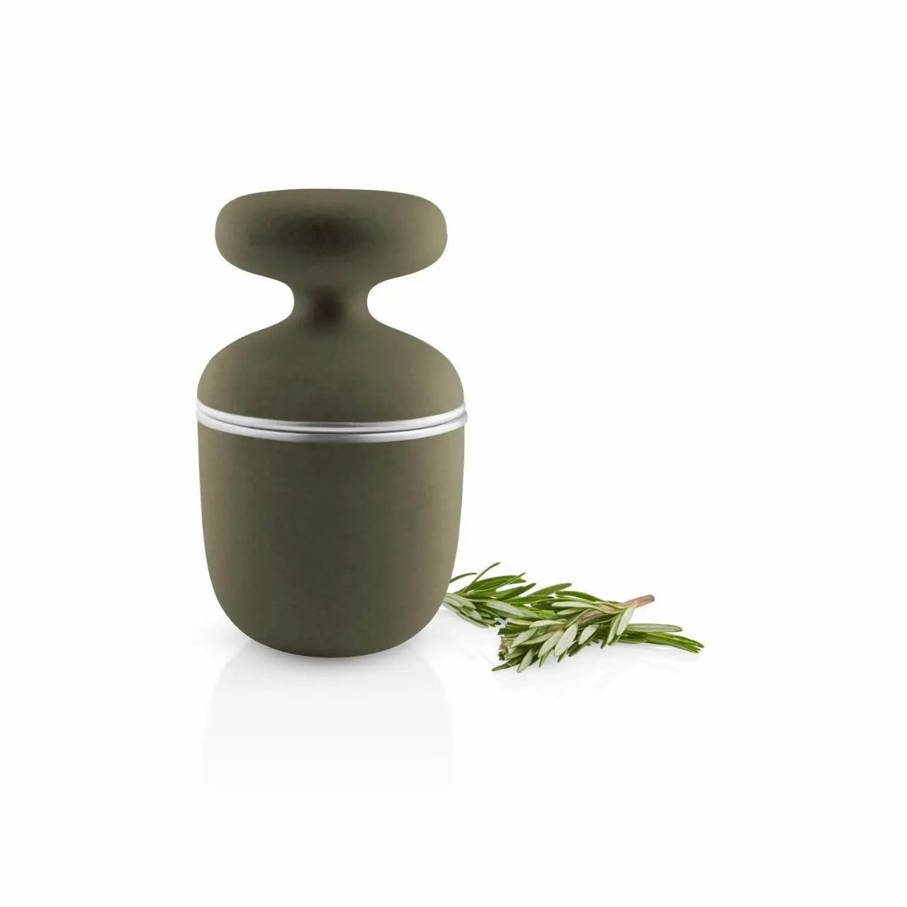Grinds and crushes spices with a simple back and forth action. The chosen spices are collected in the receptacle and ready for using in your food. The organic shape of the grinder ensures a good and comfortable grip.