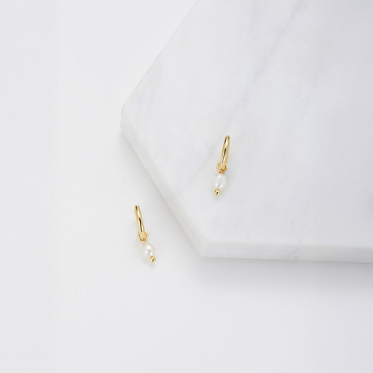 These small huggie hoops feature a delicate freshwater pearl drop, adding a touch of effortless sophistication to your everyday style.