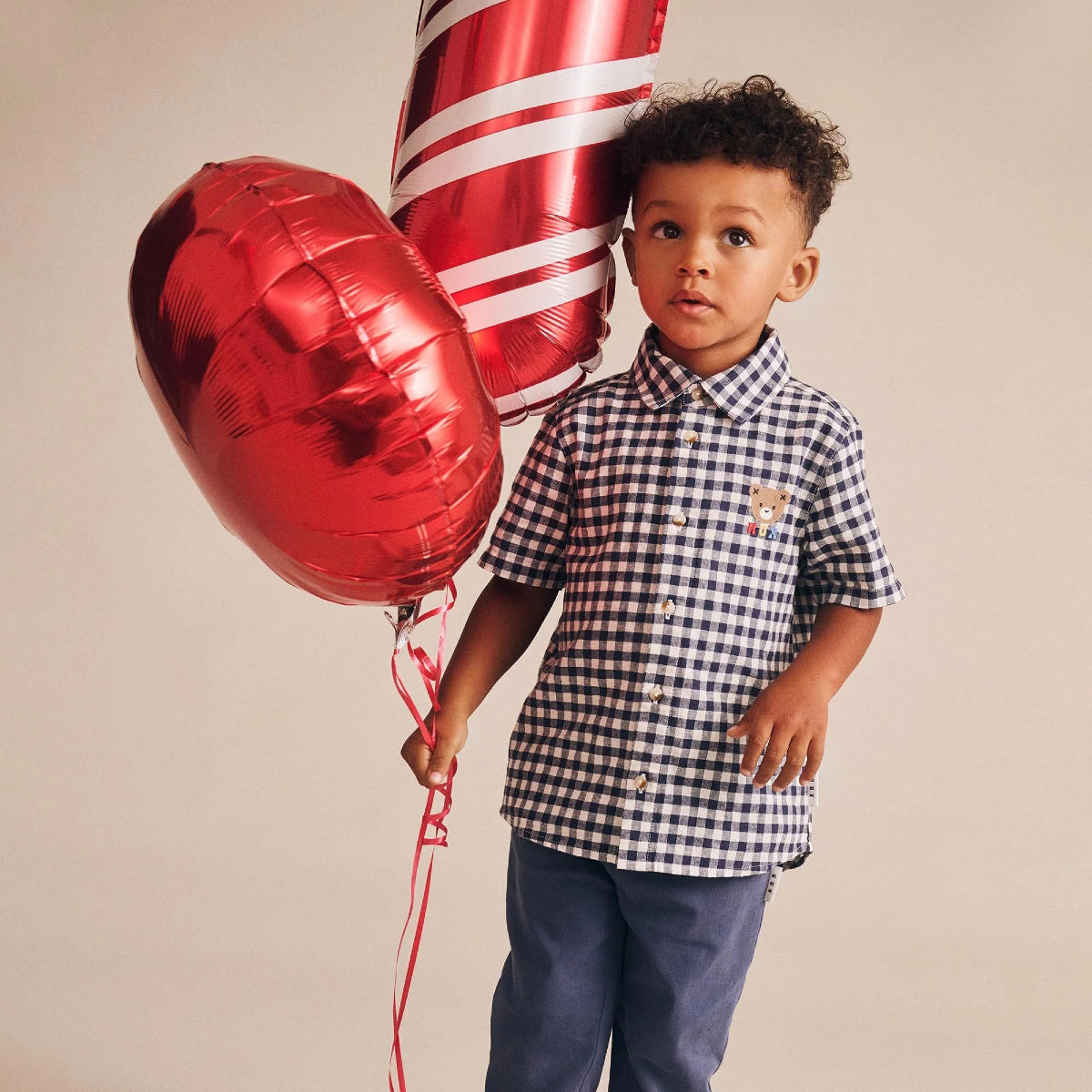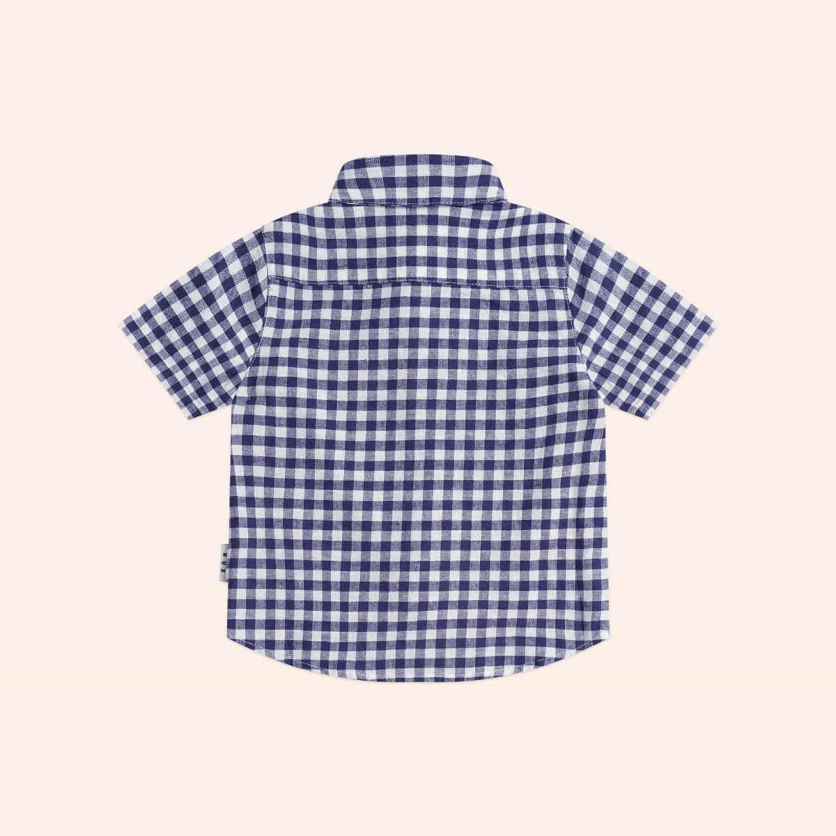 The perfect short sleeve button down shirt. In a classic gingham check made from beautiful cotton linen and with a relaxed casual fit. A timeless style, featuring a cute Huxbear embroidery on the left chest.