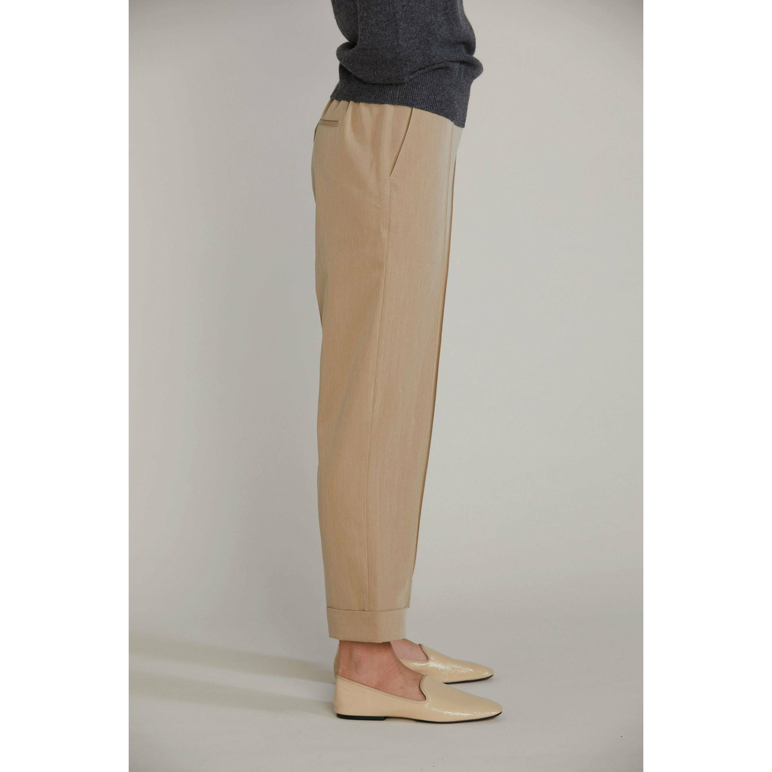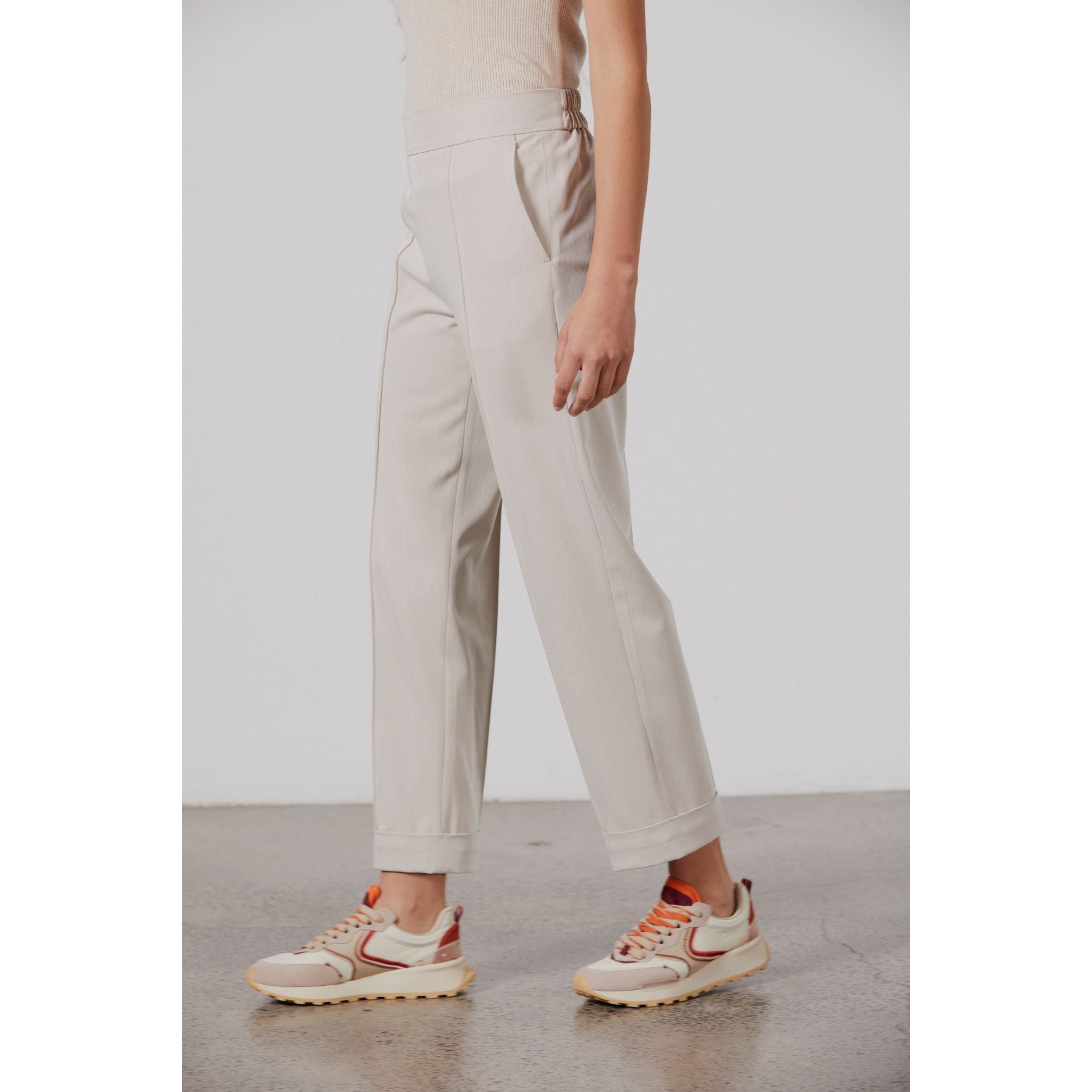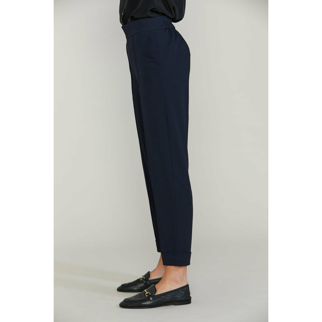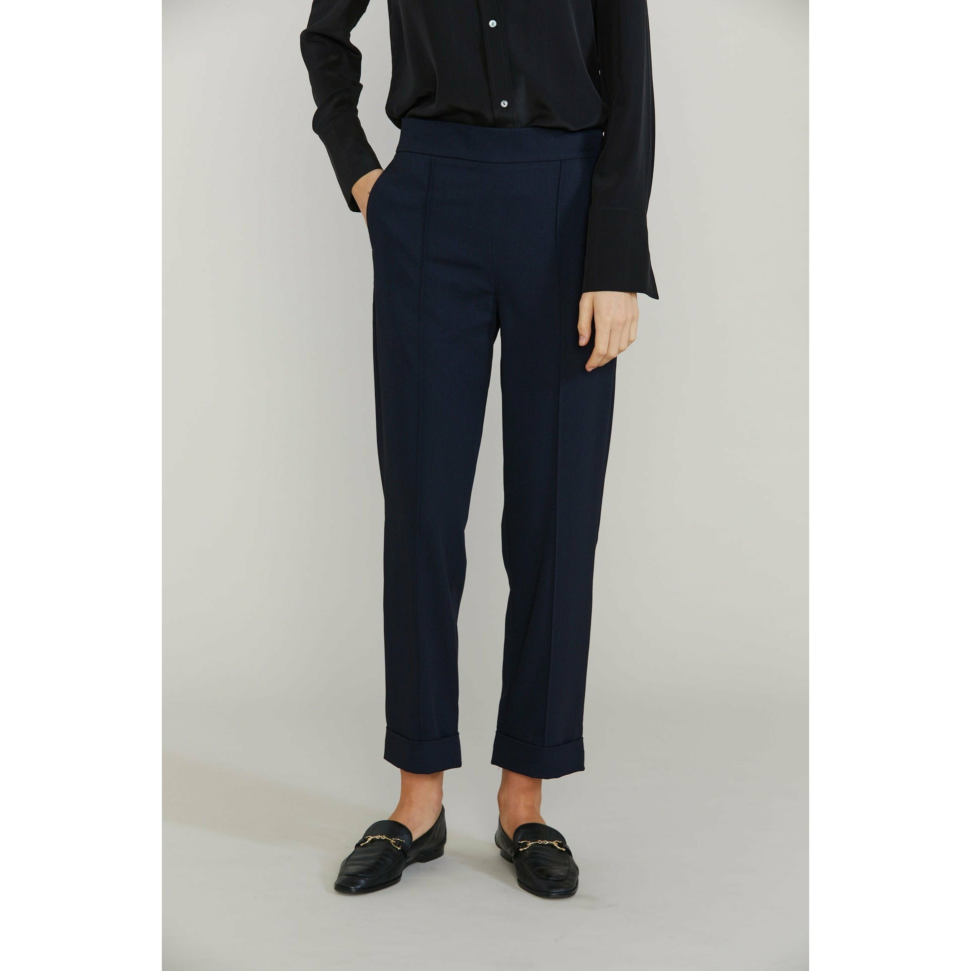 Featuring a cropped and cuffed leg with pin stitch detail down the front to elongate and add crispness. They have a flattering flat front with a refined elastic waist.