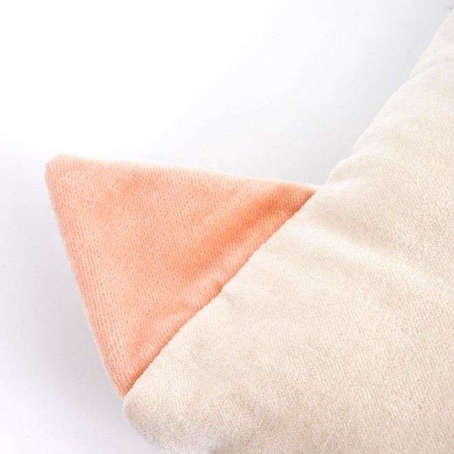 This soft cotton velvet cat cushion has sweet pointed ears and stitched features. Purrfect to cuddle up with and add fun to a room.