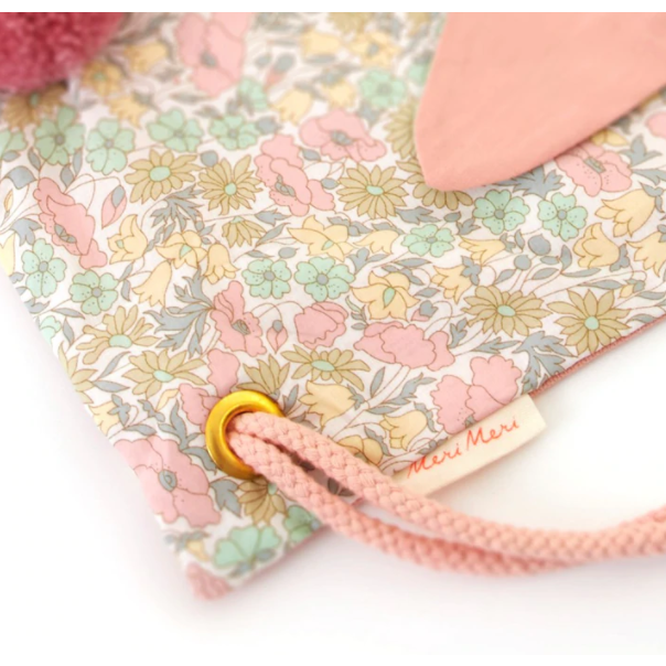 Your little bunnies will love to take this fabulous backpack on adventures. It is beautifully crafted from Liberty floral fabric, with a peach fabric on the inside and back of the bag. The floppy ears and dusky pink pompom tail are wonderful, fun embellishments.