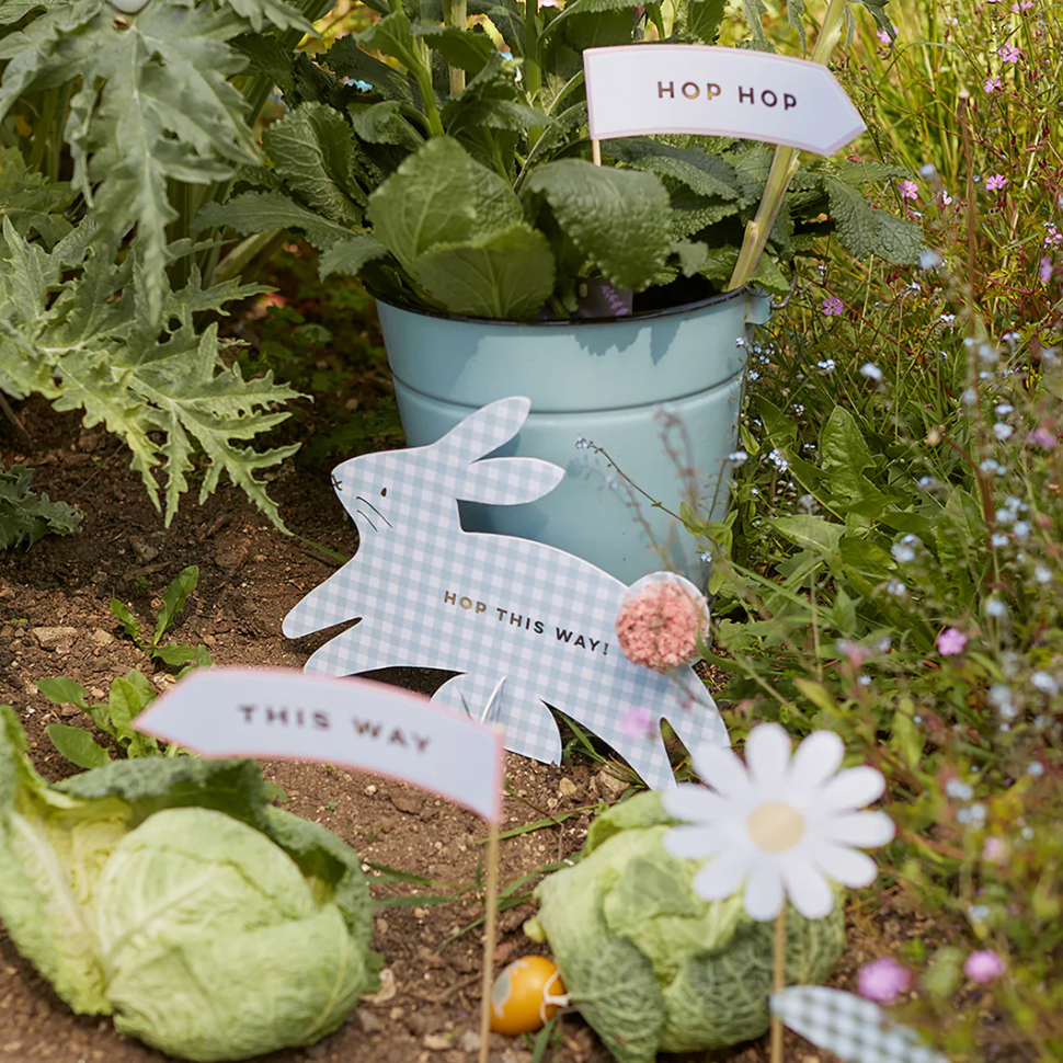This egg hunt kit looks amazing with the gingham print detail. It features bunnies, daisies and signs with clues, with gold foil detail. A fabulous way to decorate your garden and give the kids lots of fun.
