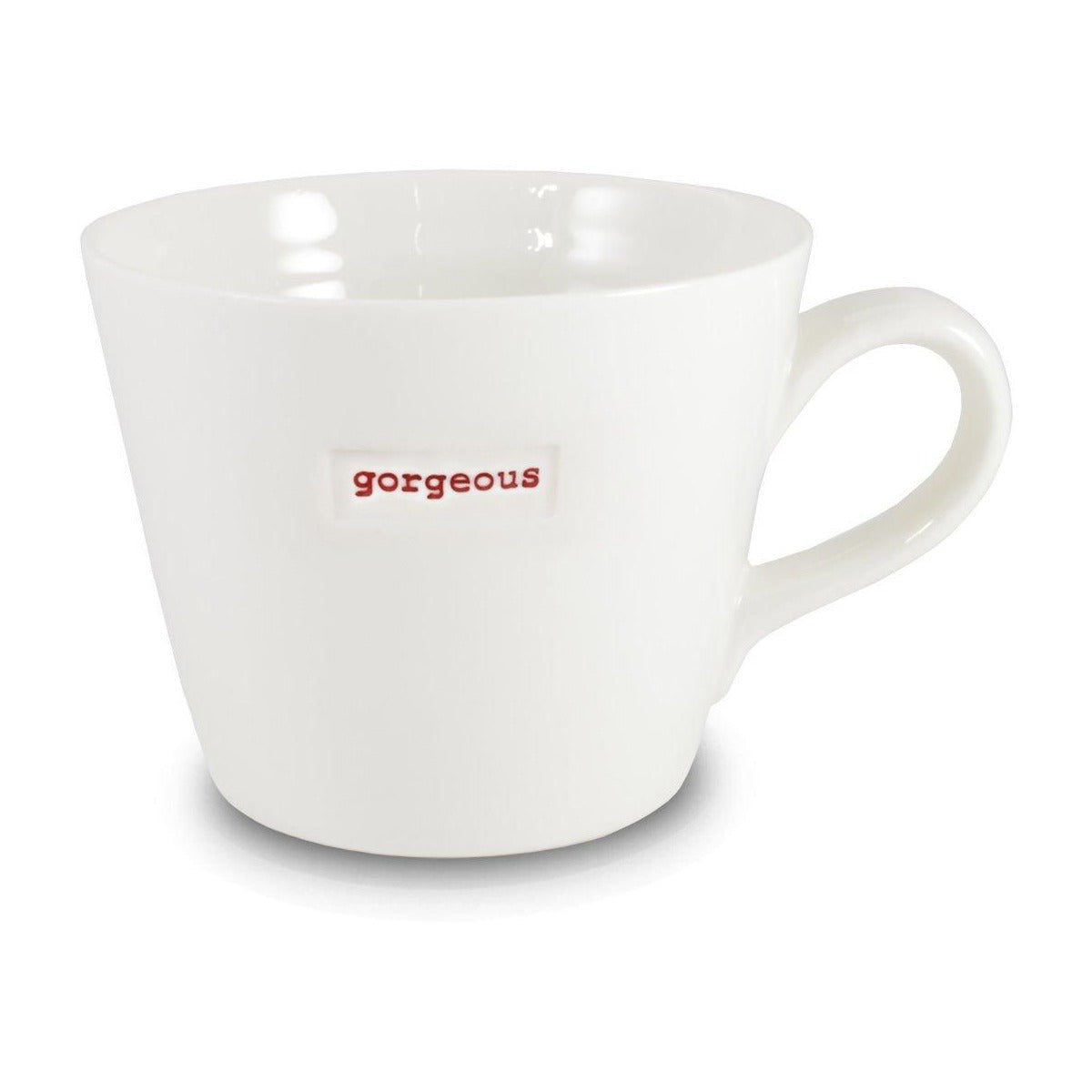 Designed by Keith Brymer Jones to be practical in the home and pleasing to the eye, this simple yet stylish bucket mug is perfectly formed from super white porcelain and hand stamped with specific words. The mugs’ beautiful, satisfyingly cosy shape contrasts with its clean, subtle exterior, giving the mug a country feel but with urban elegance. There are many choices to choose from.
