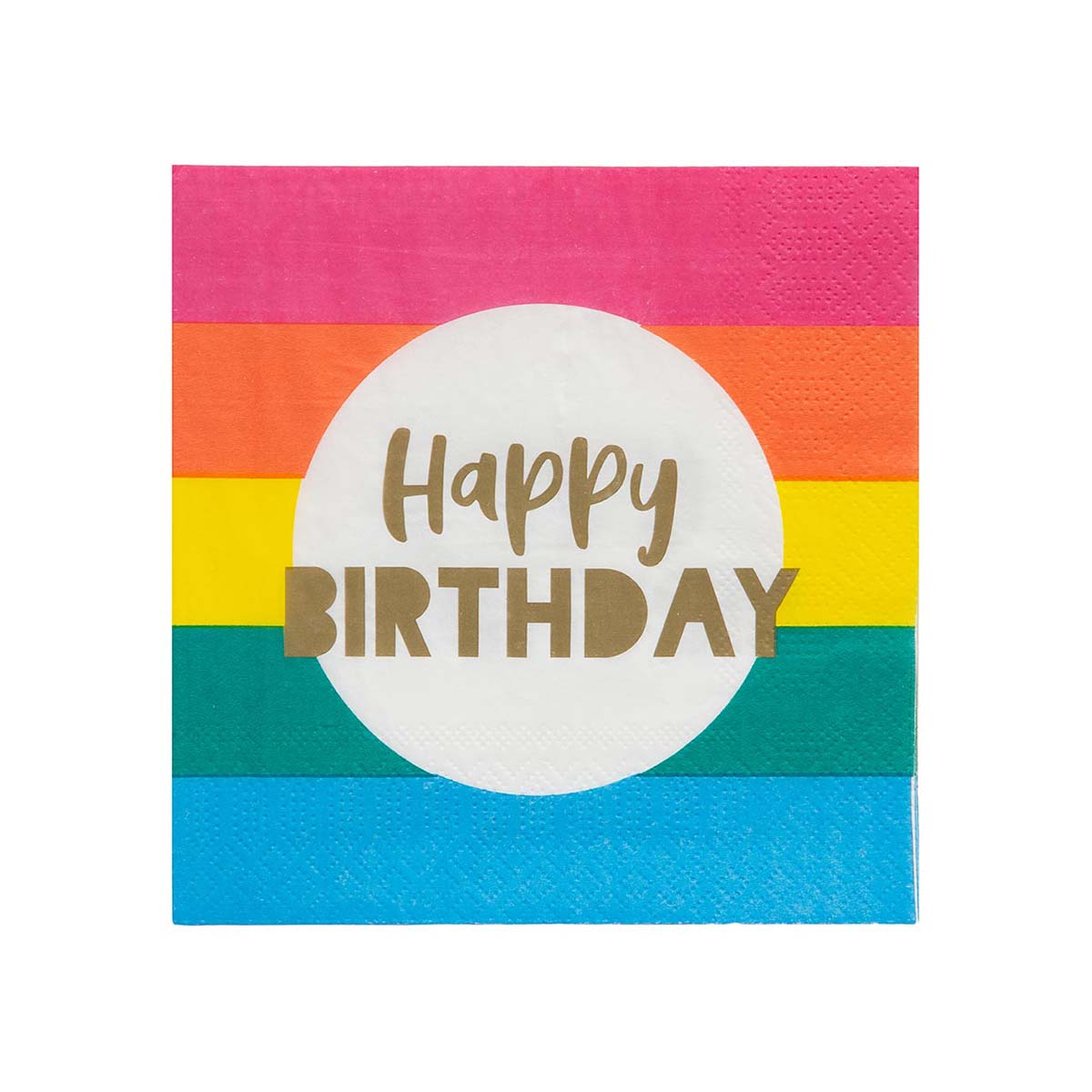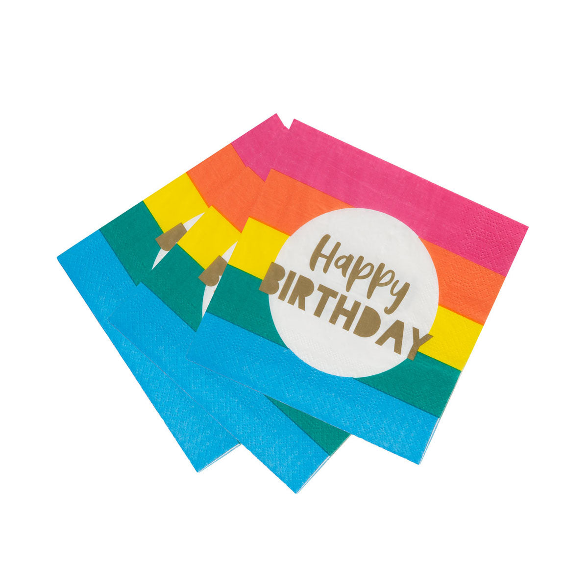 Brighten up the birthday table with these rainbow 'Happy Birthday' napkins at all ages. Pair with our rainbow plates and cups to create a colourful spectacle everyone will love.