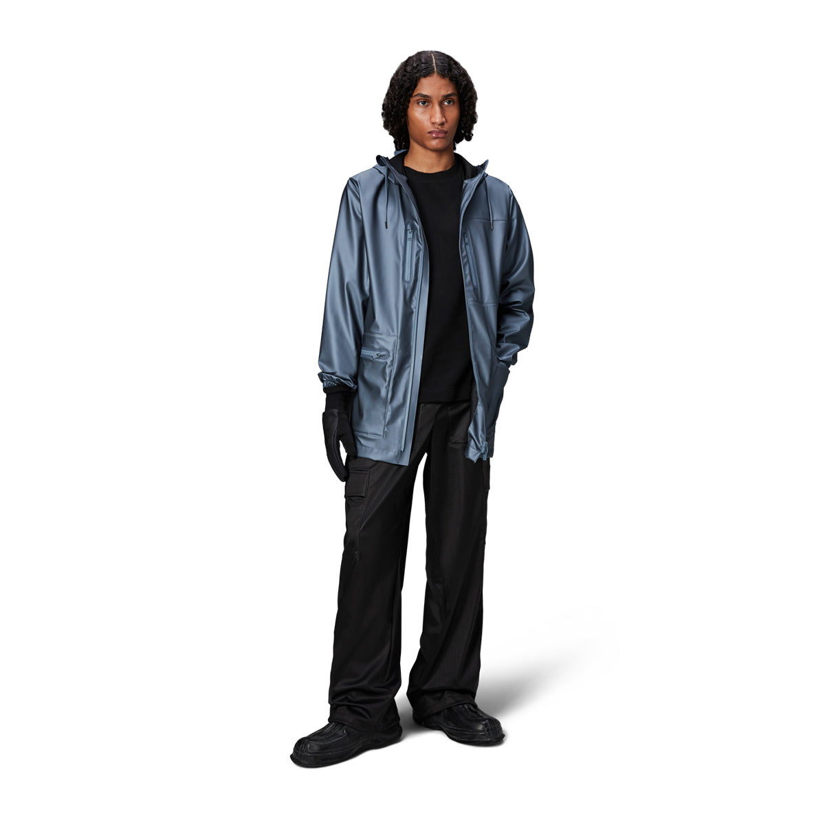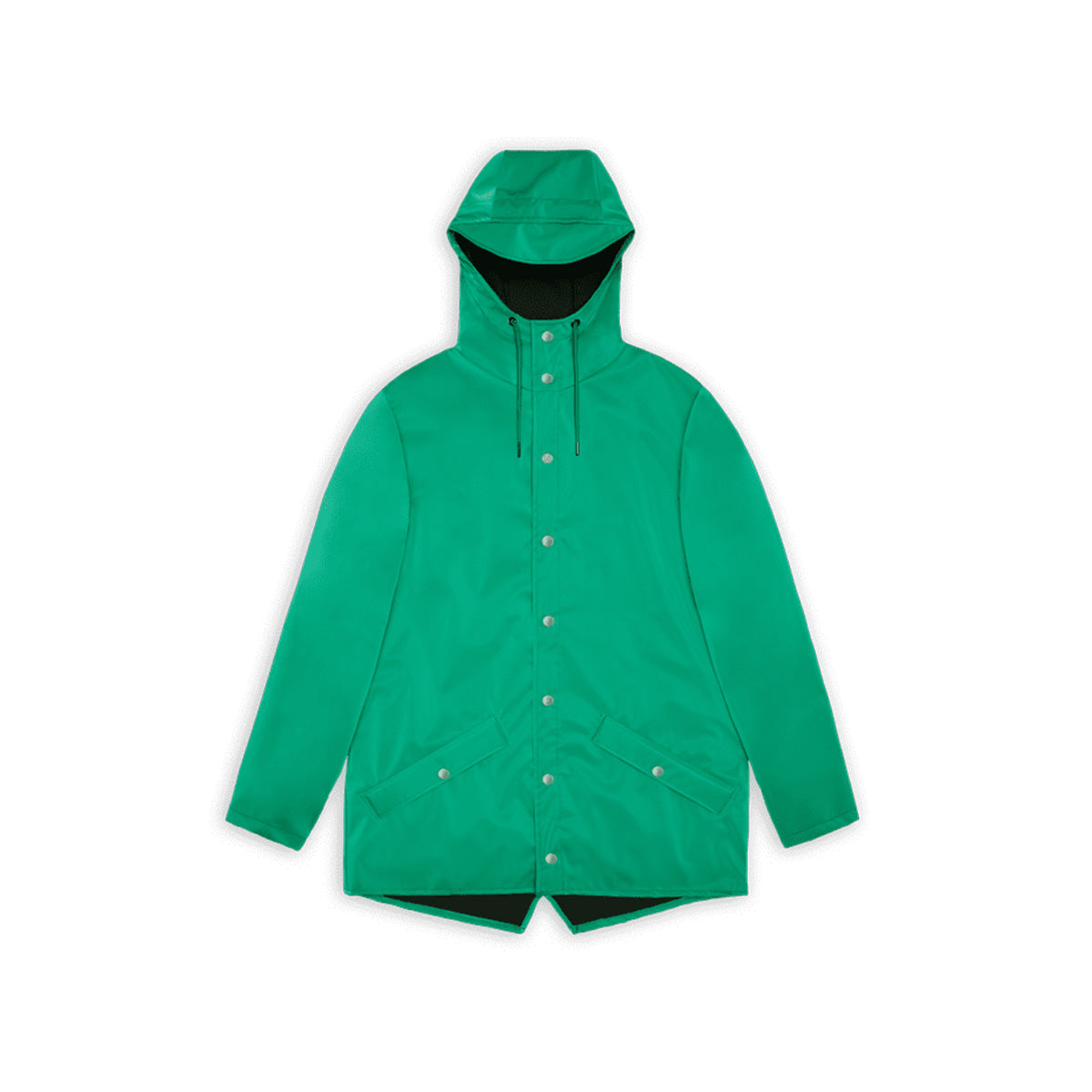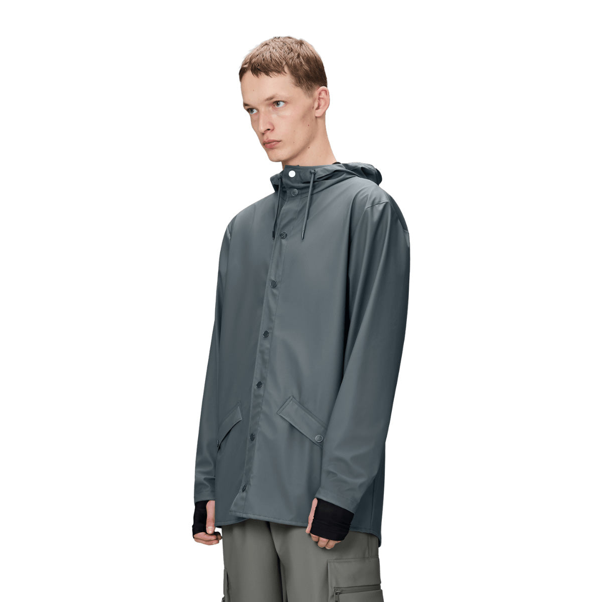 Jacket is an ever-contemporary unisex rain jacket delivering high functionality in a minimal silhouette. Features include double welded slanting flap pockets, adjustable cuffs and a fishtail hem. The look is finished with snap fastenings, under-arm eyelets, and a back yoke with concealed vents.