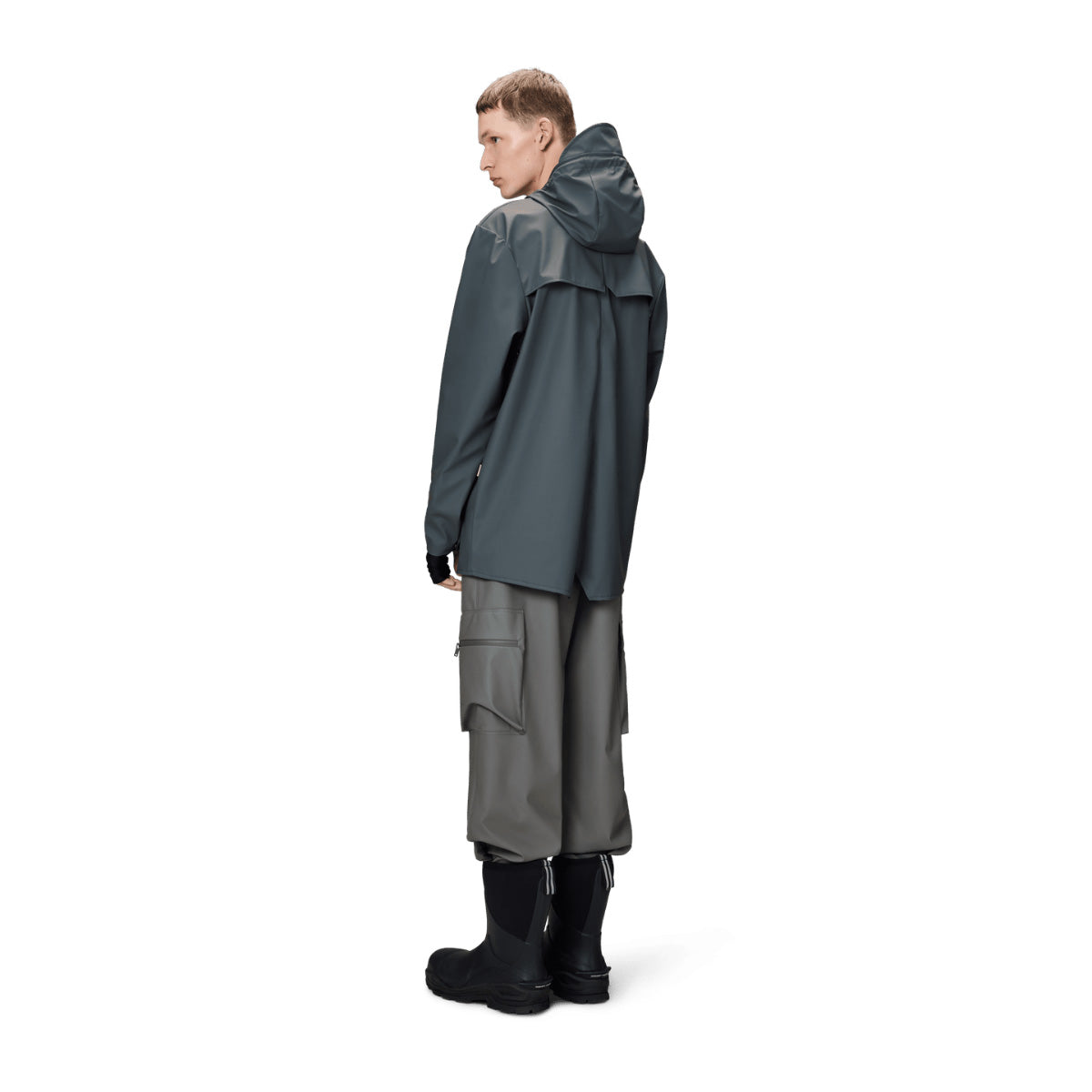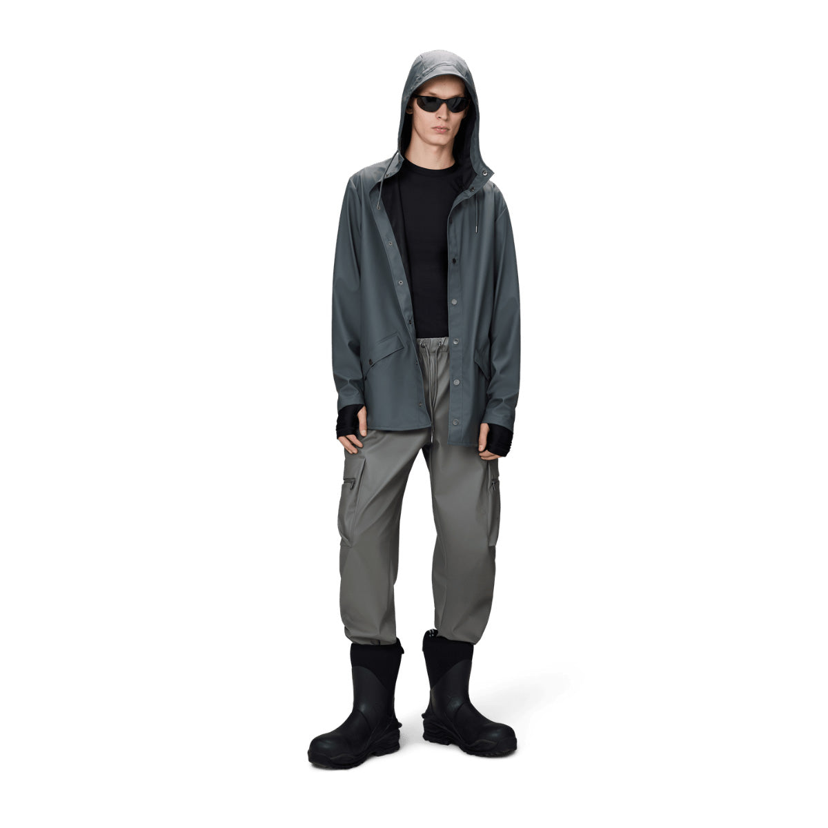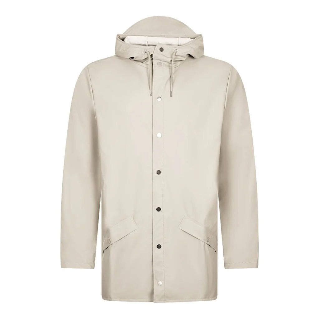 Jacket is an ever-contemporary unisex rain jacket delivering high functionality in a minimal silhouette. Features include double welded slanting flap pockets, adjustable cuffs and a fishtail hem. The look is finished with snap fastenings, under-arm eyelets, and a back yoke with concealed vents.