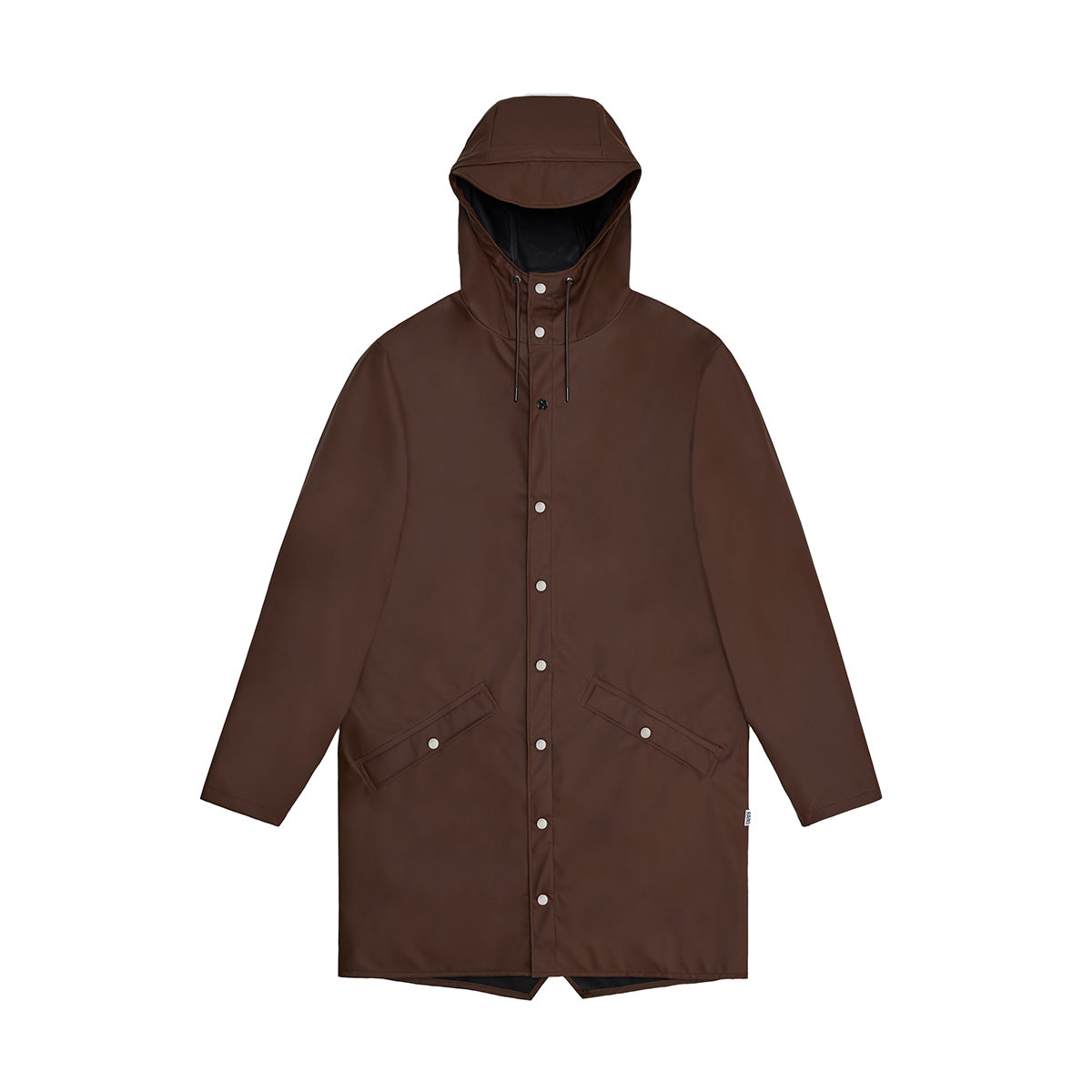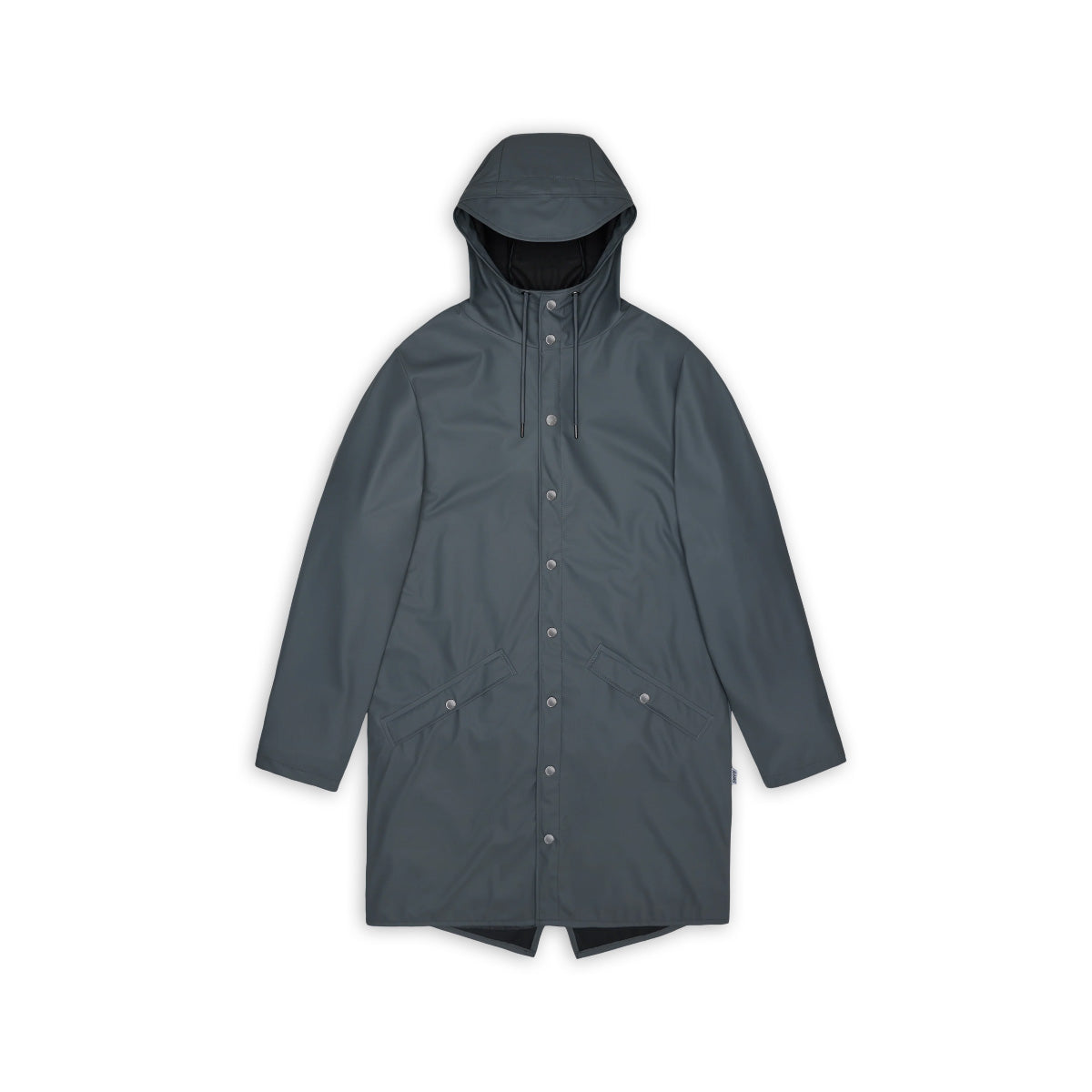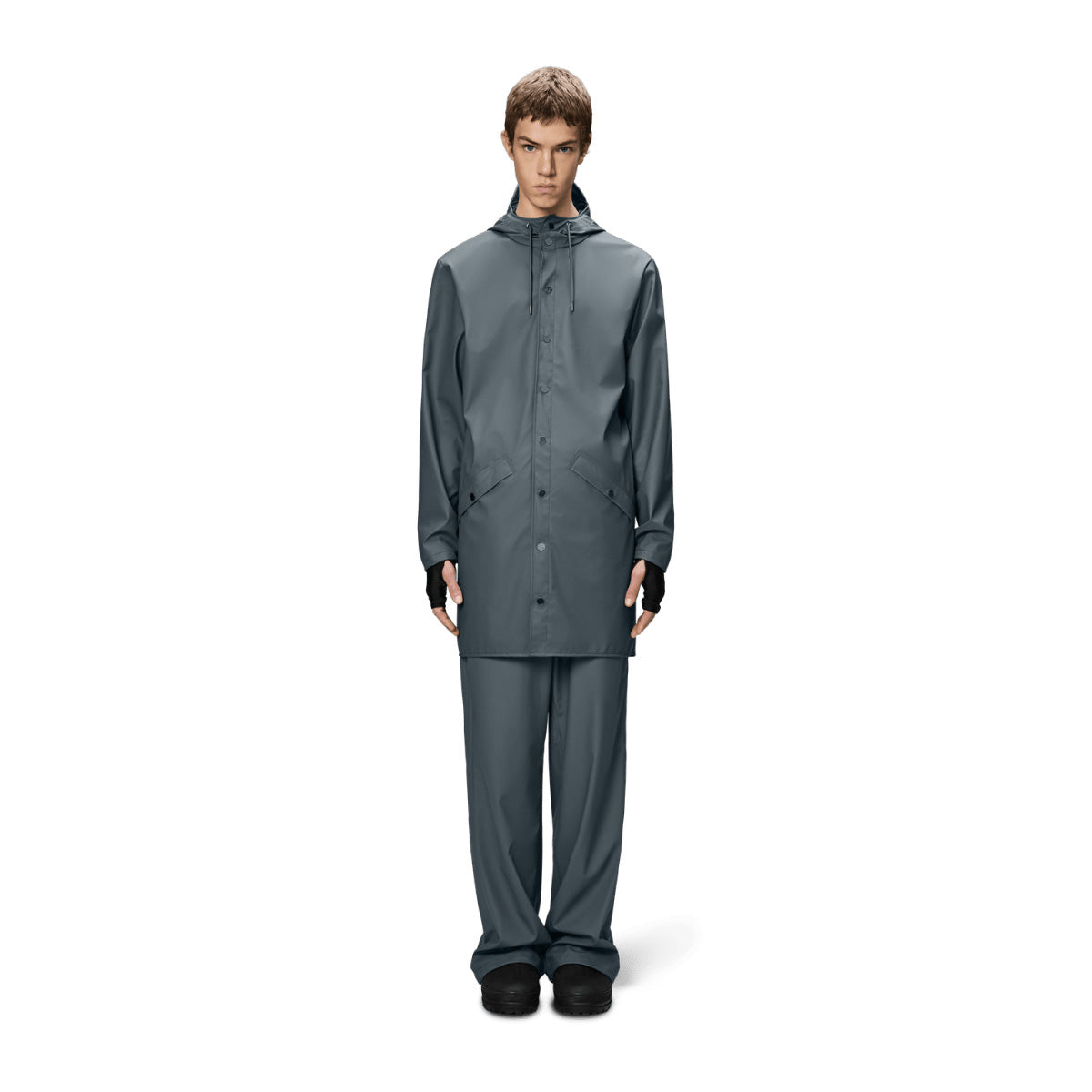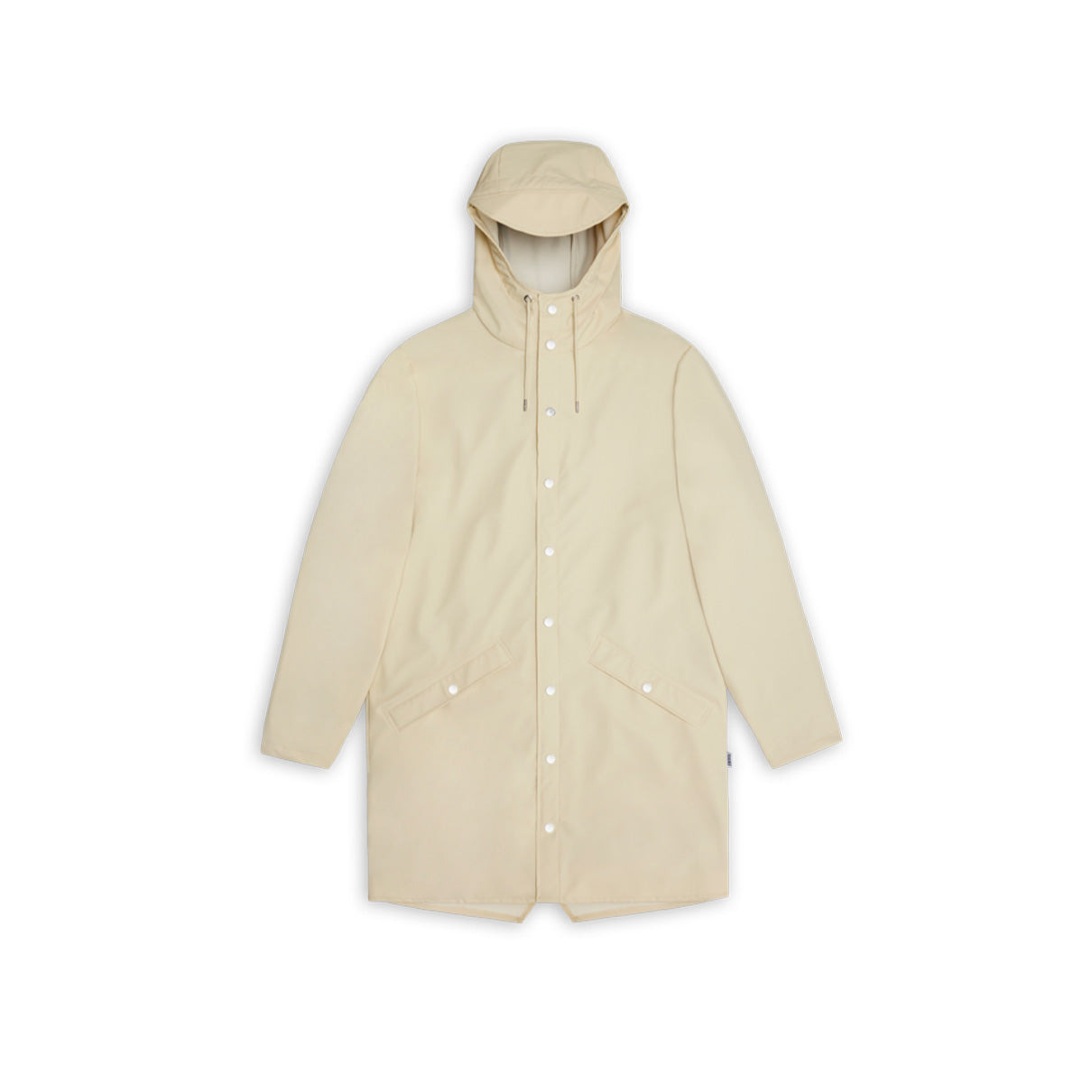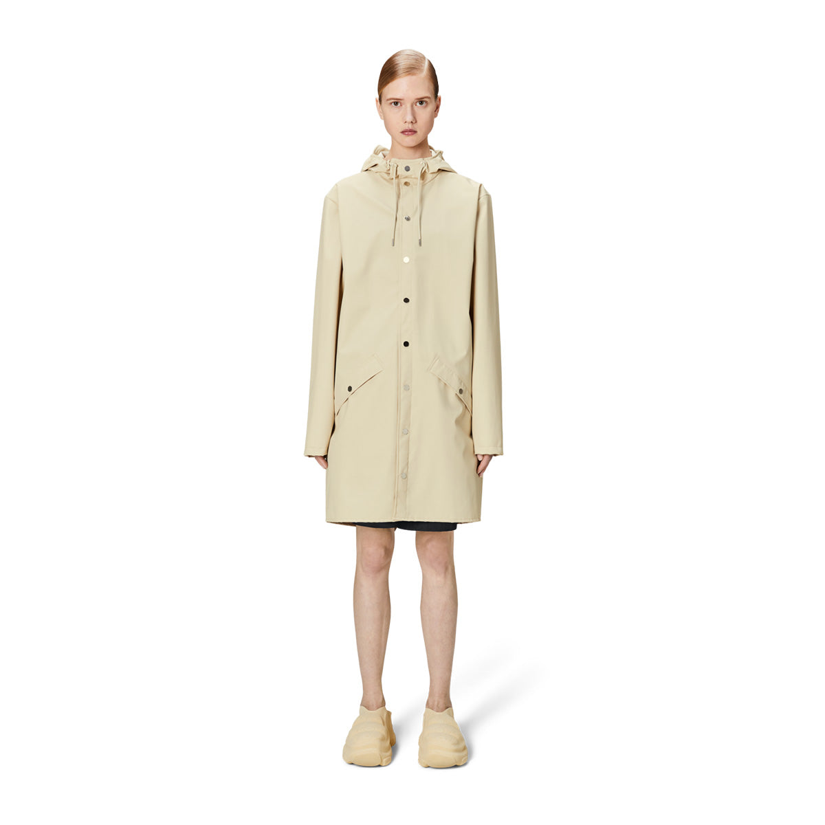 Long Jacket is a longer version of Rain’s classic design, Jacket. This ever-contemporary unisex rain jacket delivers high functionality in a minimal silhouette. Features include double welded slanting flap pockets, adjustable cuffs and a fishtail hem. The look is finished with snap fastenings, under-arm eyelets, and a back yoke with concealed vents.