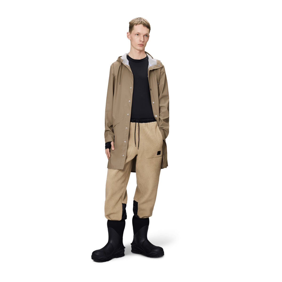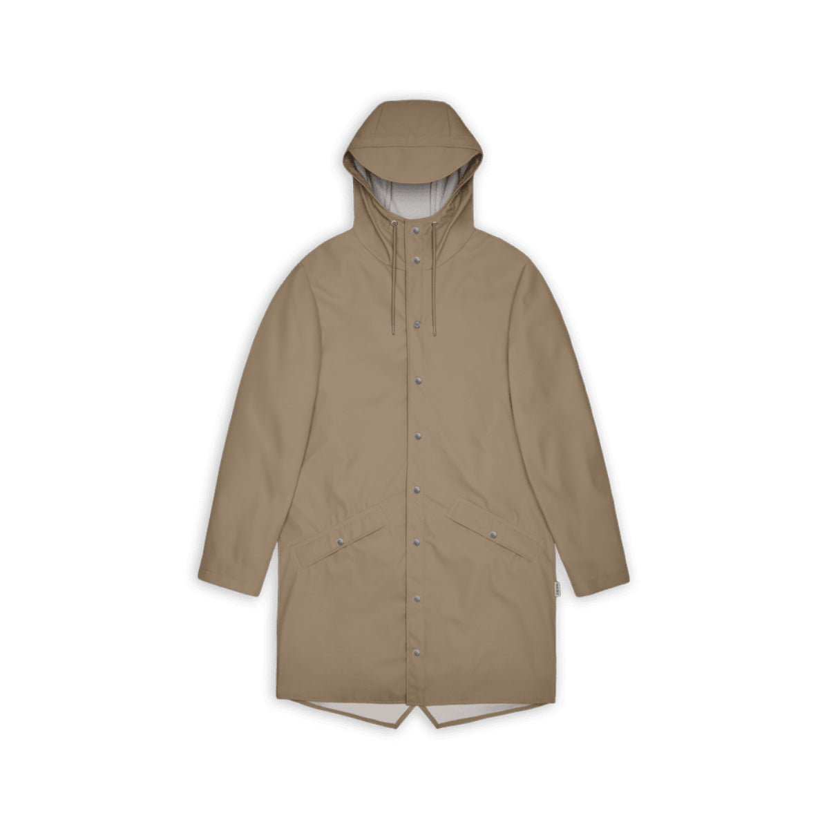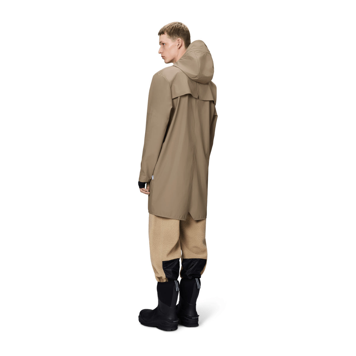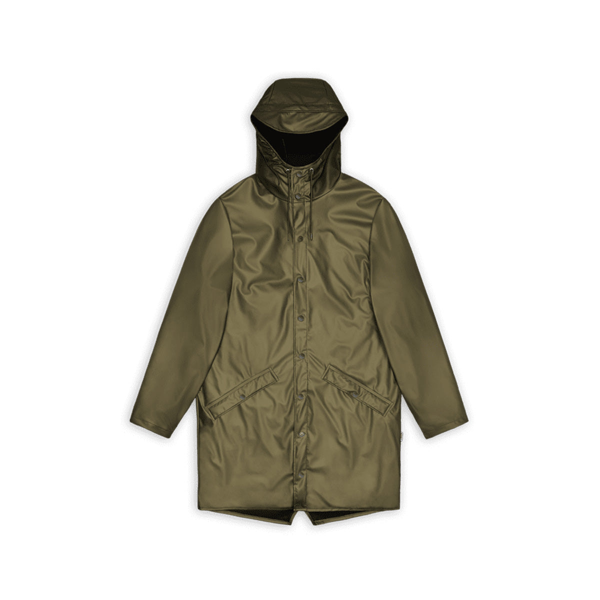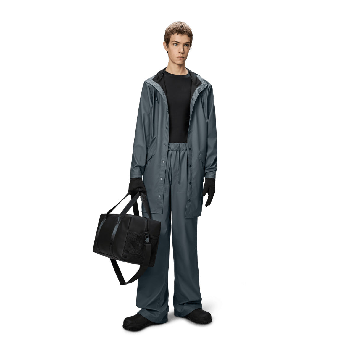 Long Jacket is a longer version of Rain’s classic design, Jacket. This ever-contemporary unisex rain jacket delivers high functionality in a minimal silhouette. Features include double welded slanting flap pockets, adjustable cuffs and a fishtail hem. The look is finished with snap fastenings, under-arm eyelets, and a back yoke with concealed vents.