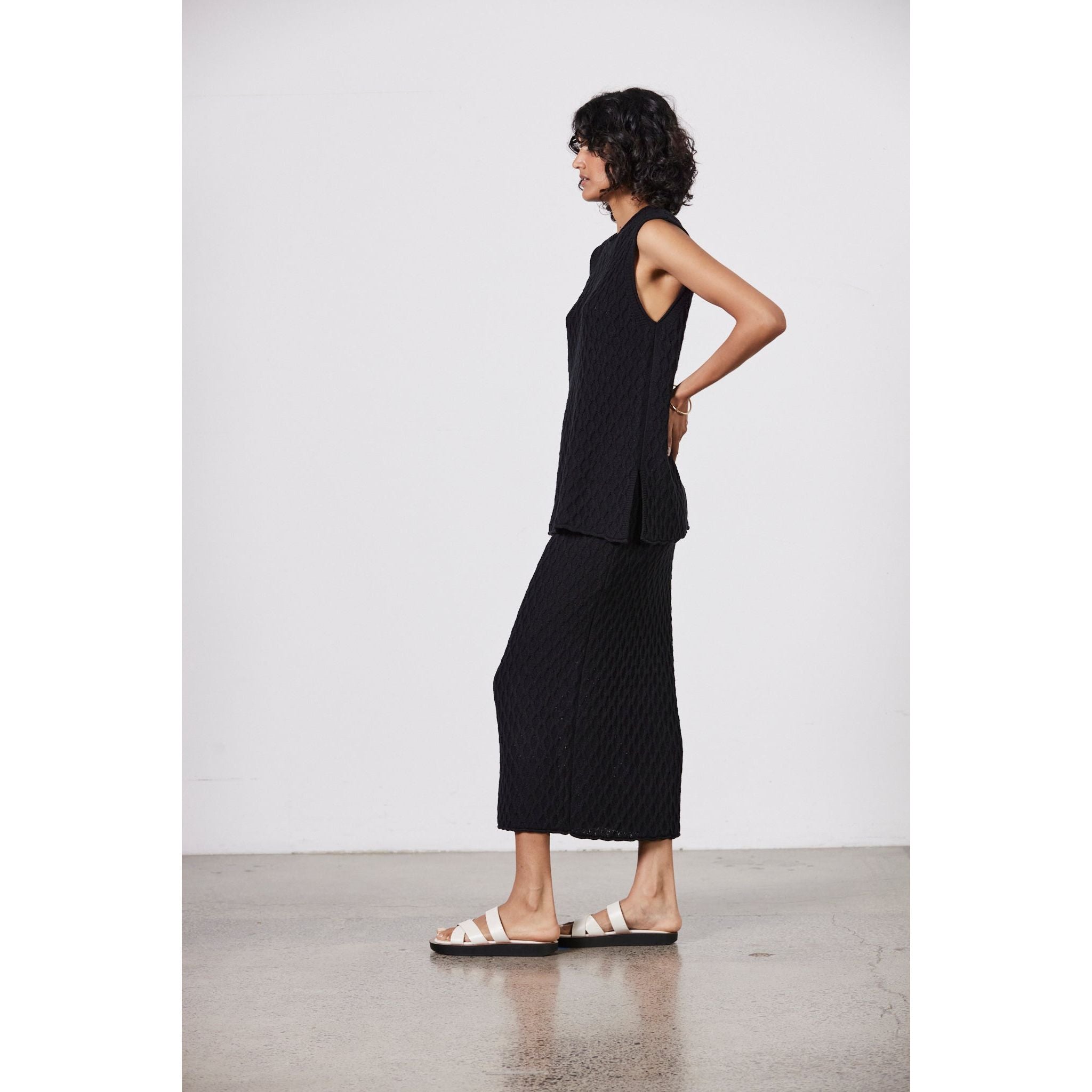 Encompass effortless summer style with the Romy Knit Skirt in classic black. Elevate your look by pairing with the Romy Knit Tank for sophisticated yet stylish dressing or opt for a tank or oversized shirt. Tailor-made with a sustainable blend of yarns that provide a cooling touch against the skin, while ensuring the skirt preserves its shape.