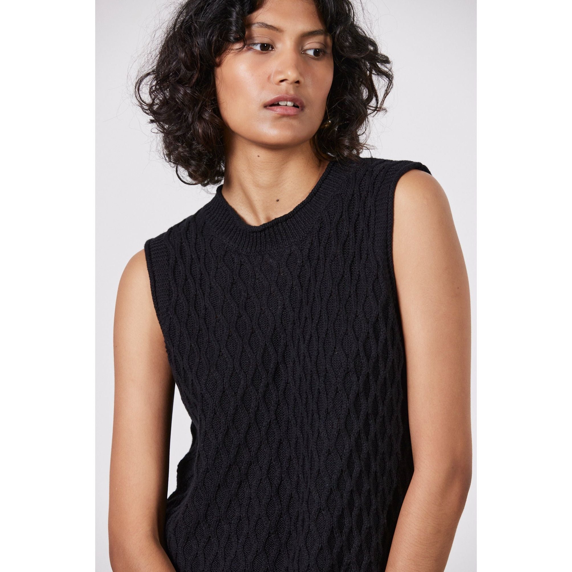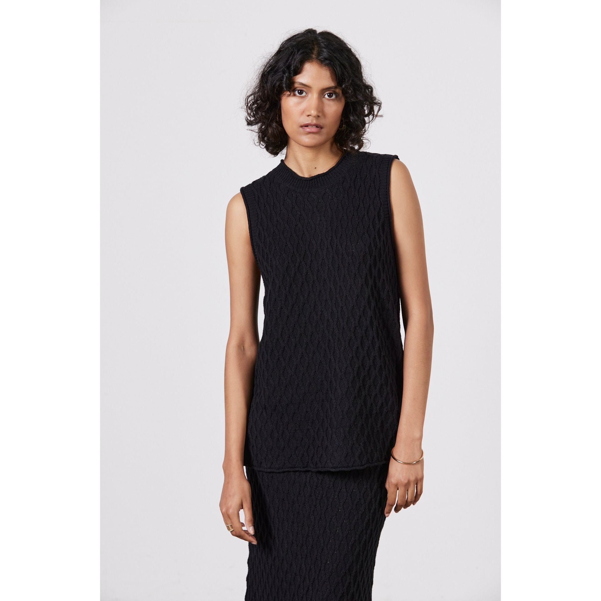 Designed to be paired with the Romy Skirt for a flawless ensemble, the Romy Knit Tank in the classic black, is constructed with a one-of-a-kind, sustainable blend of yarns that offer a refreshingly cool sensation against the skin. Layer over your favourite skirt or trousers to mix and match your style.