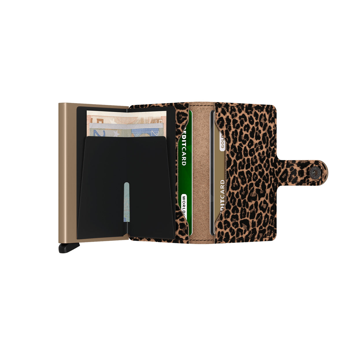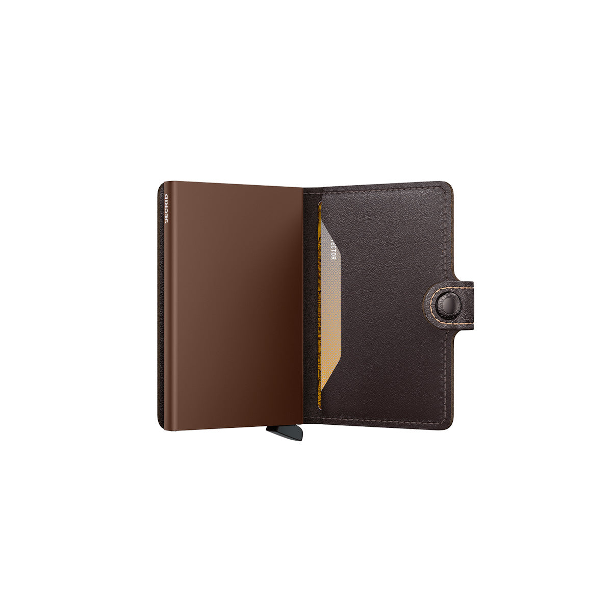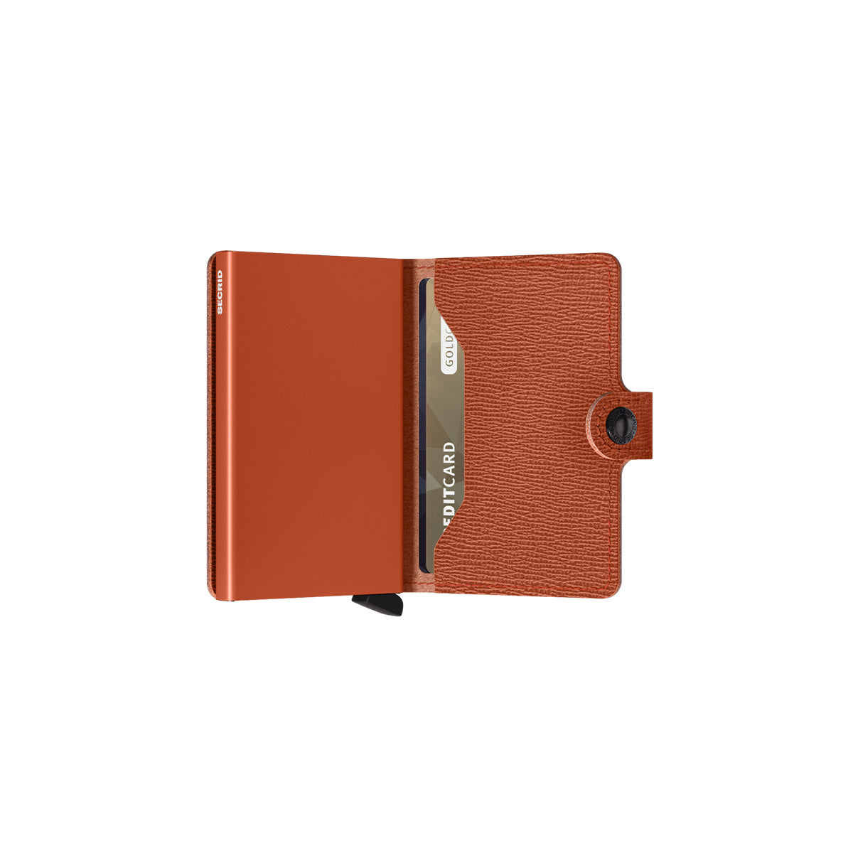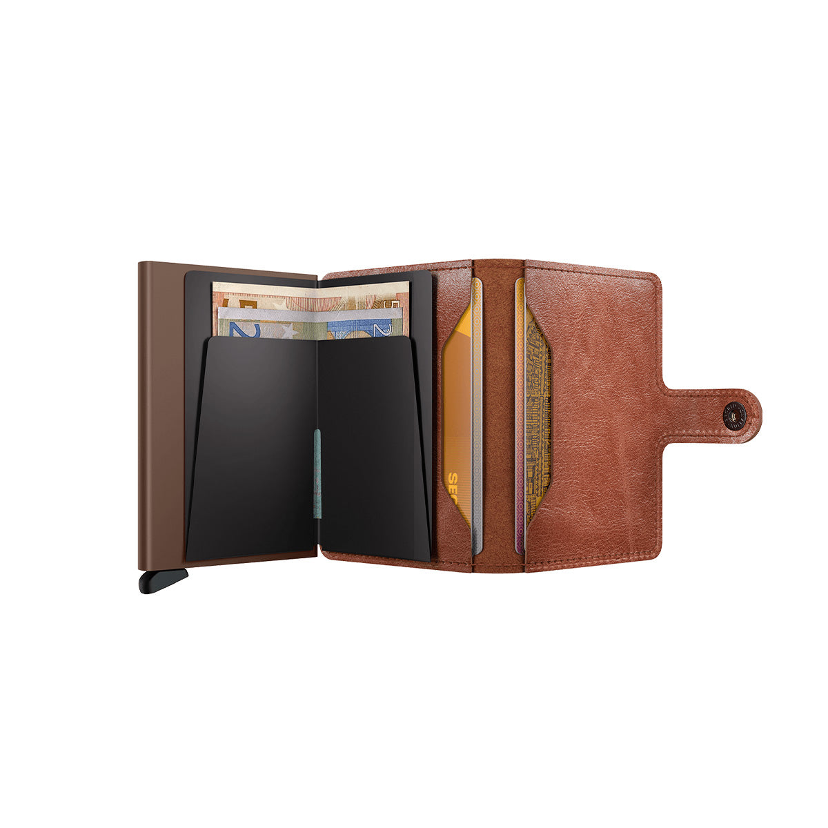 Small in size and surprisingly large in storage capacity, the Miniwallet combines the best of both worlds. The exterior holds banknotes, receipt and cards, while the aluminium Cardprotector allows you to slide out cards with one simple motion and protects them from bending, breaking and unwanted wireless communication.