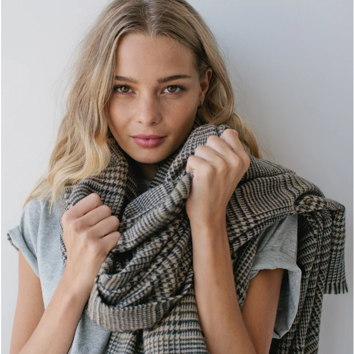 Tweed: A timeless weave that we absolutely adore. A statement piece - this beauty is big, really big. Wear it with knits, coats or a shirt - it’s just like wearing