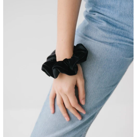 The biggest & most beautiful scrunchie you've seen. Cute in your pony, even cooler on your wrist. Stunning velvet w. velvet piping.