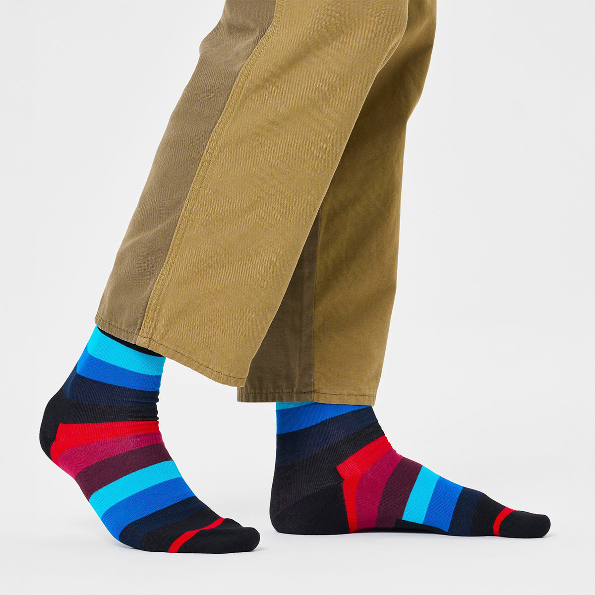 In the mood for striped socks? Don''t worry, we''ve got you. Stripes are our specialty. Let your feet cross the fashion line with some colored stripes, be it red, blue or black. Made of soft and breathable organic combed cotton. Vibrant stripes in bold hues of red, blue, and black create a striking visual effect on the Stripe Sock. At Happy Socks, we believe in color, creativity, and fun! This playful design is perfect for those who dare to be different, adding a splash of personality to any outfit. Whether you're dressing up or dressing down, the Stripe Sock's dynamic pattern is sure to turn heads. With its unique blend of color and style, this novelty sock is a great way to express your individuality. Perfect gift for: fashion risk-takers and statement makers.