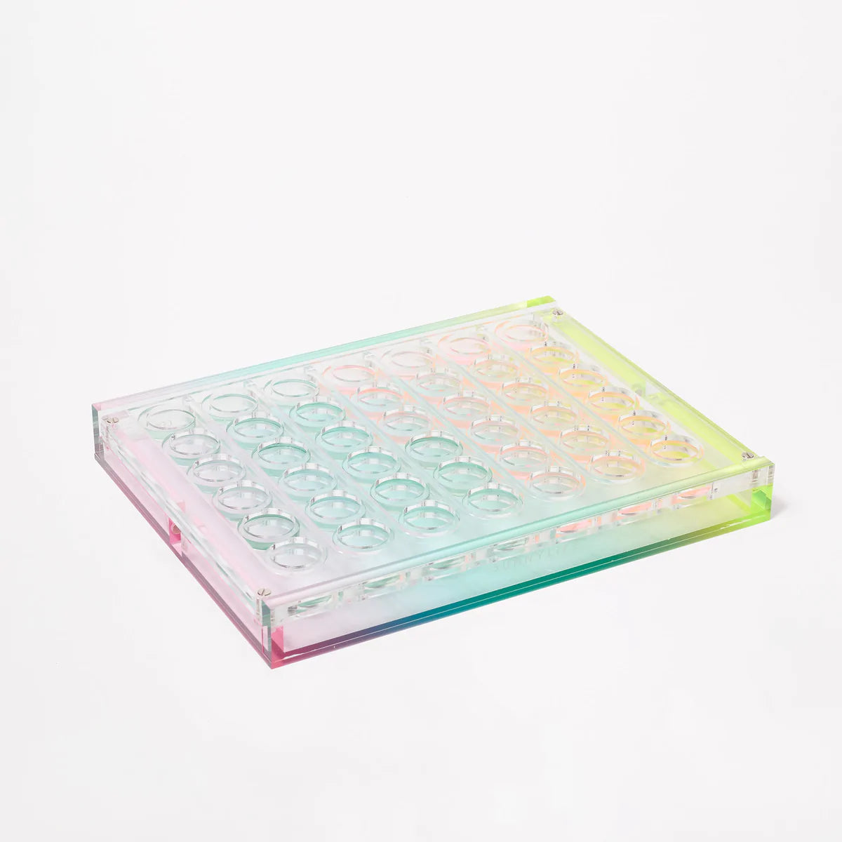 Give yourself a competitive edge with this luxurious rendition of a popular classic. Our stunningly transparent Lucite game sets are a must-have for any lover of retro style and kaleidoscopic colour, designed to be just as beautiful out on display as during a game. With two-toned playing chips and a rainbow, ombre base, the Aurora 4 in a row set will bring a sophisticated pop of colour to any home.