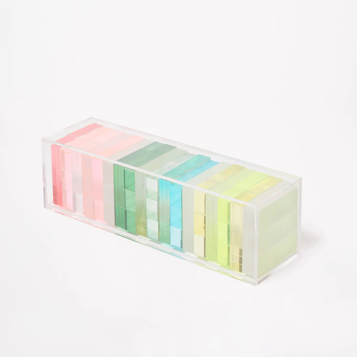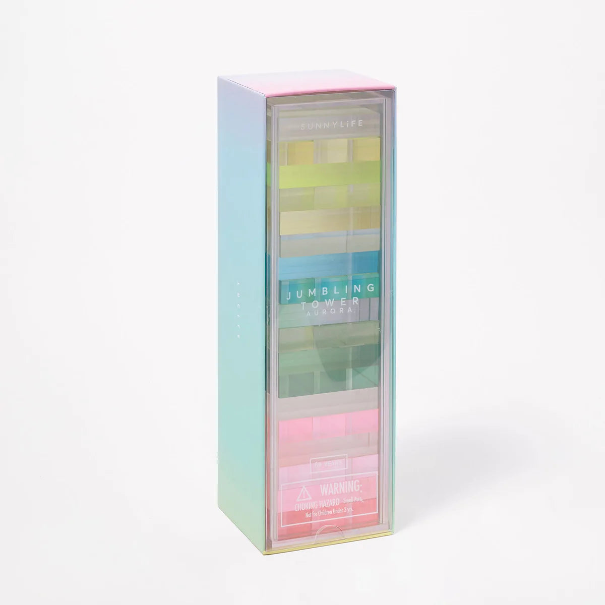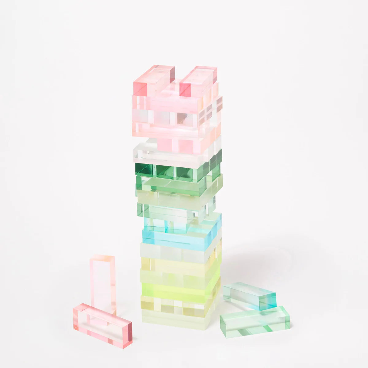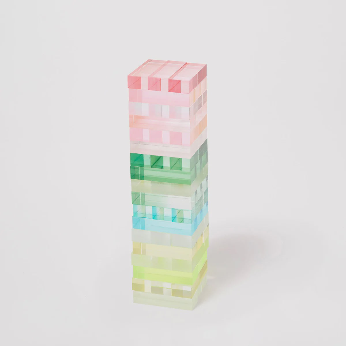 Give yourself a competitive edge with this luxurious rendition of a popular classic. Our stunningly transparent Lucite game sets are a must-have for any lover of retro style and kaleidoscopic colour, designed to be just as beautiful out on display as during a game. With transparent and ombre blocks in a prism of bright colours, the Aurora jumbling tower brings a sophisticated pop of colour to any home. Plus, it all packs away into its own lucite display case for easy storage.