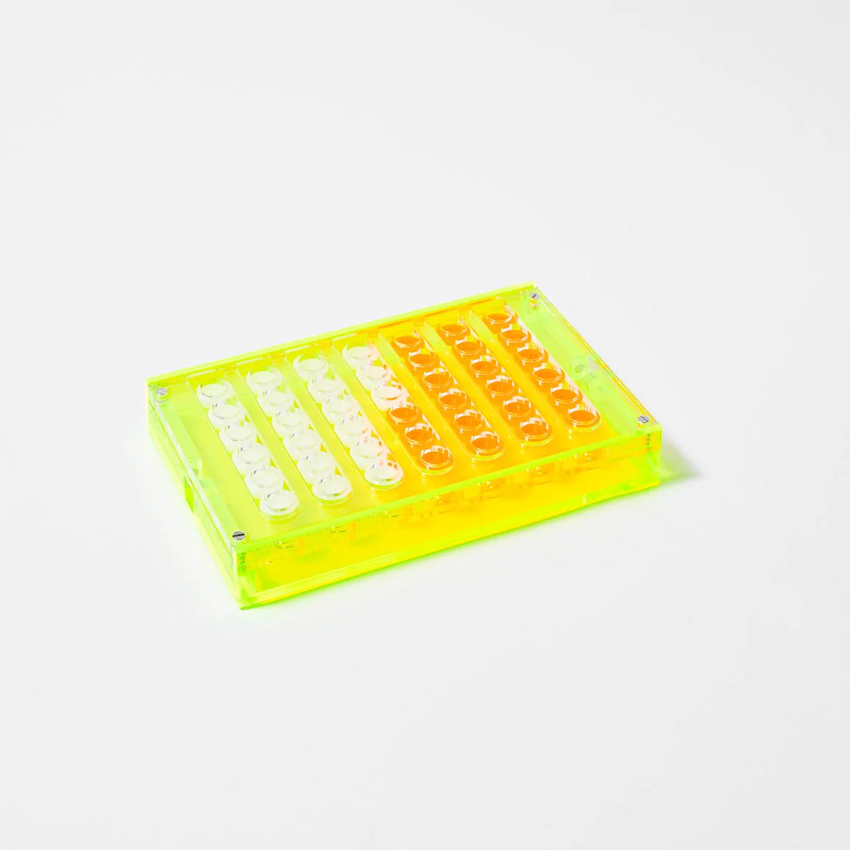 Lucite is a high-quality, trademarked version of acrylic resin developed in the 1930s. Superior due to its strength and transparency as well as UV, water, and scratch resistance, Lucite is the best version of acrylic resin on the market today. It is a popular feature of interior and furniture design and iconic for its retro-modern look reminiscent of the 1950s post-war era.Our range of luxurious and limited edition Lucite games in the new gleaming Neon colourway are inspired by the the warm sunshine beaming through the sky on a hot summers day. Instantly your home with a blaze of Neon and keep the display to entice your competitors. Give yourself a competitive edge with this stylish rendition of a popular classic.