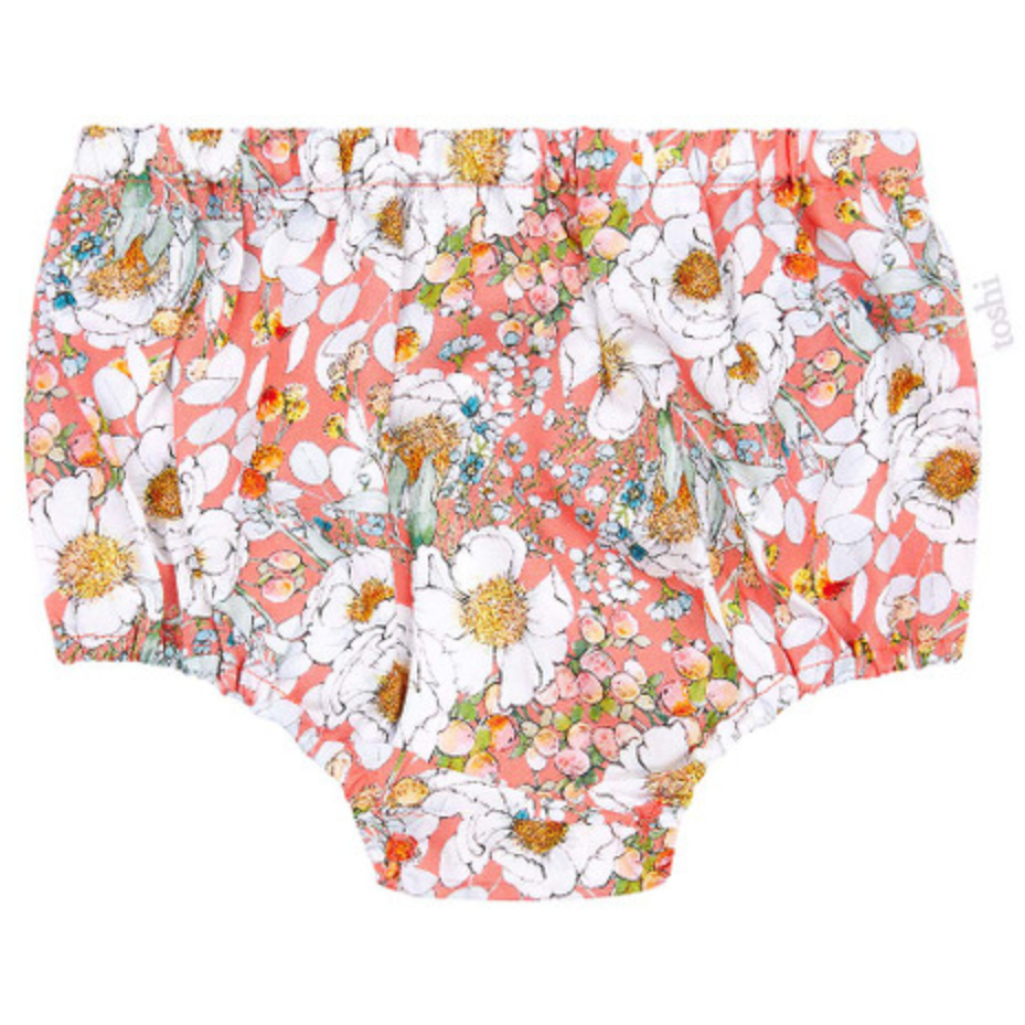 Toshi Baby Bloomers are crafted from the finest quality 100% cotton. Our bloomers are designed for comfort and mobility during little adventures and moments of vigorous play. The elasticised waist offers ease of dressing and convenient nappy changes. Claire Dusk features the original and exclusive, signature design of the season; an abundance of native floral and Eucalyptus leaves are presented in a dusty blue hue.