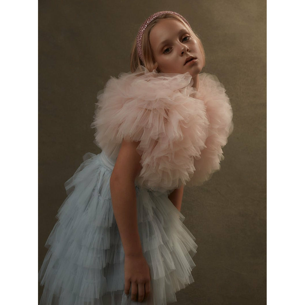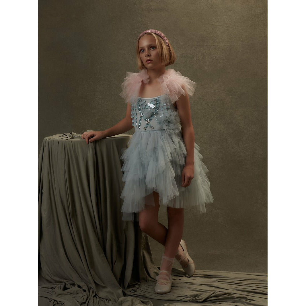 Reminiscent of cloudless summer skies, the Sydney Tutu dress in Glacier features a showstopping bodice adorned with sequins, beads and pom-poms. This stunning statement look is teamed with a generously layered skirt in tiers of vibrant blue that falls from the waist to create a scene-stealing effect. Adjustable straps add extra comfort to this standout look.