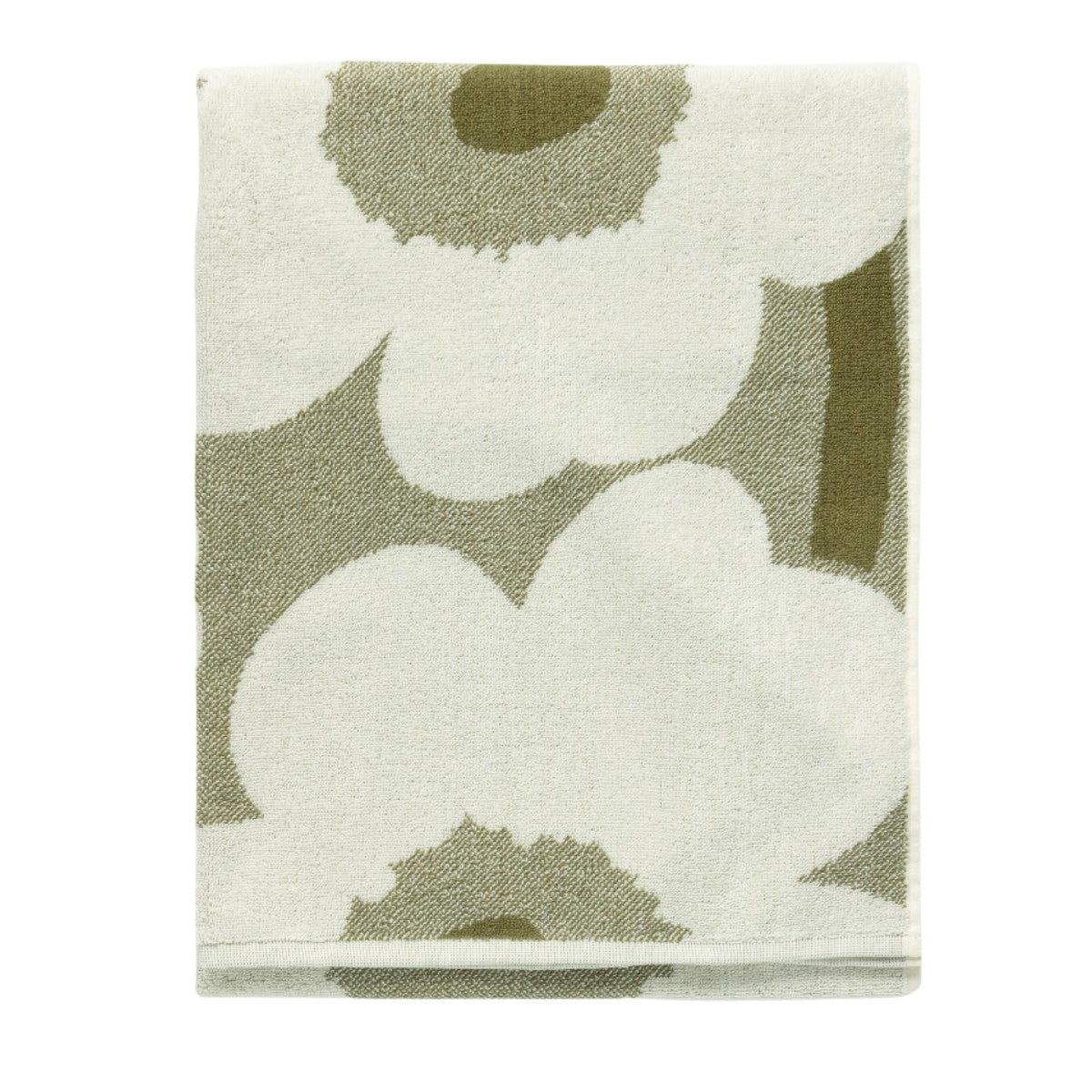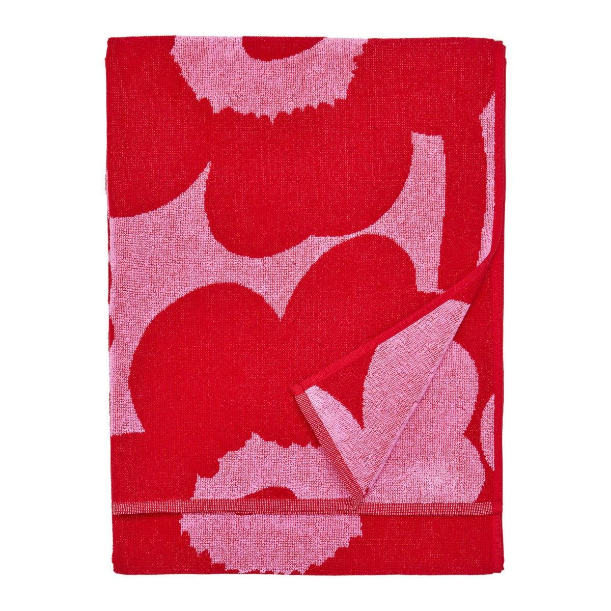Made from cotton terry, this bath towel features the Unikko (poppy) pattern. Marimekko towels are lightweight, absorbent, and fast drying. 100% cotton.