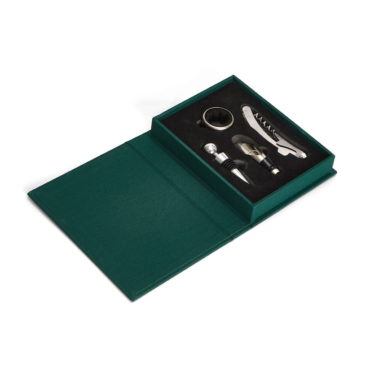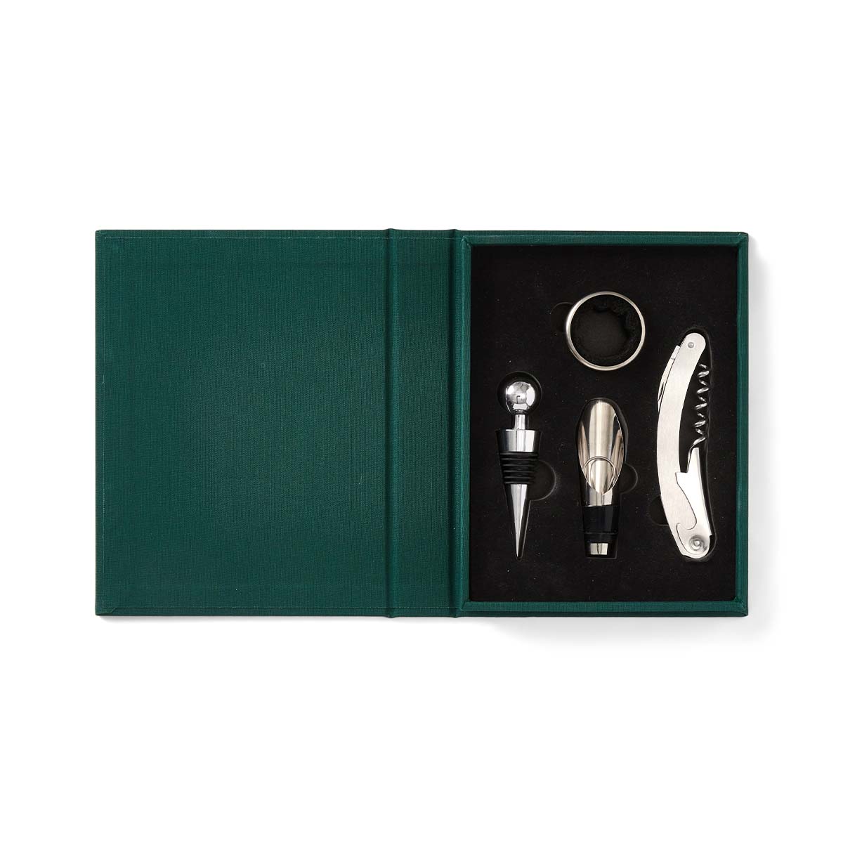 Discover the essential kit for perfecting your wine experience - a refined toolbox in an elegant book-like box that makes the perfect going-away gift. Inside, you'll find an opener, stopper, pourer, and collar, each serving as essential tools in wine appreciation. All products are made of stainless steel and are dishwasher safe.