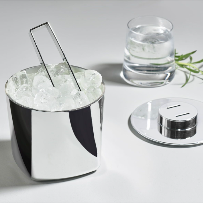 The Rocks ice cube cooler with serving spoon from Zone Denmark is a nice addition to the in-house bar. The Danish design duo Mavro//Lefevre are behind the extremely elegant stainless steel ice bucket. Like a melting ice cub, the square base at the top is transofmred into a circular shape. The cover cleverly hides a serving spoon.