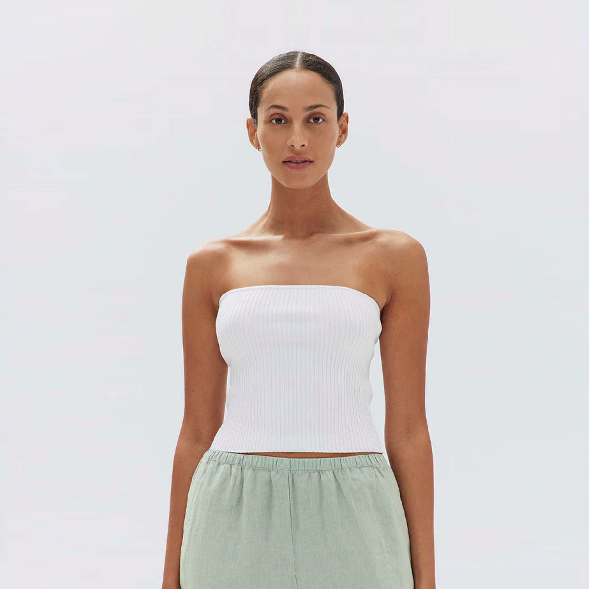 Skara Strapless Rib Top - White