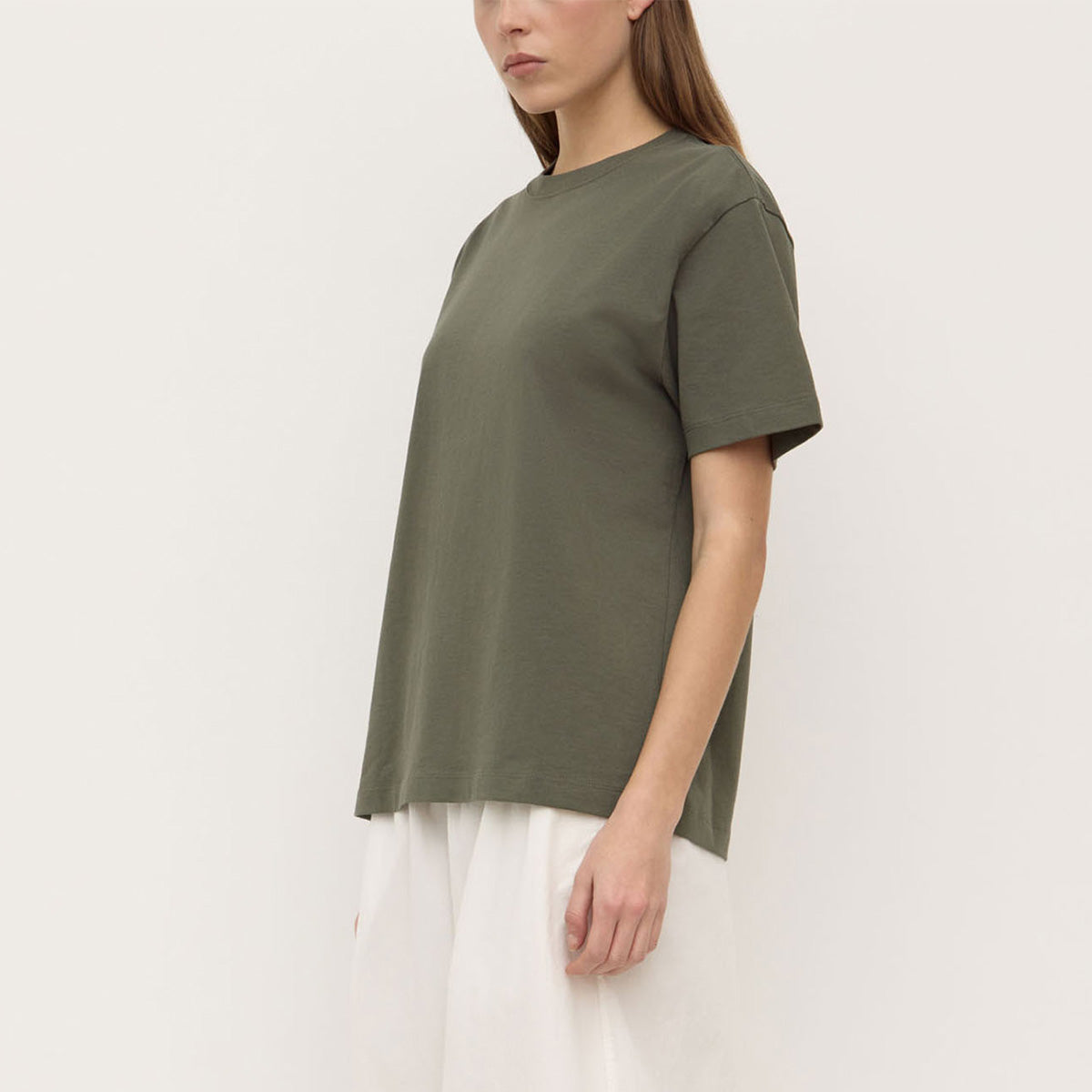 The womens Base Organic Tee is a capsule wardrobe essential. This crew neck tee features our classic Everyday fit and is made from 100% organic cotton jersey with a softly structured, substantial feel that will hold its shape.
